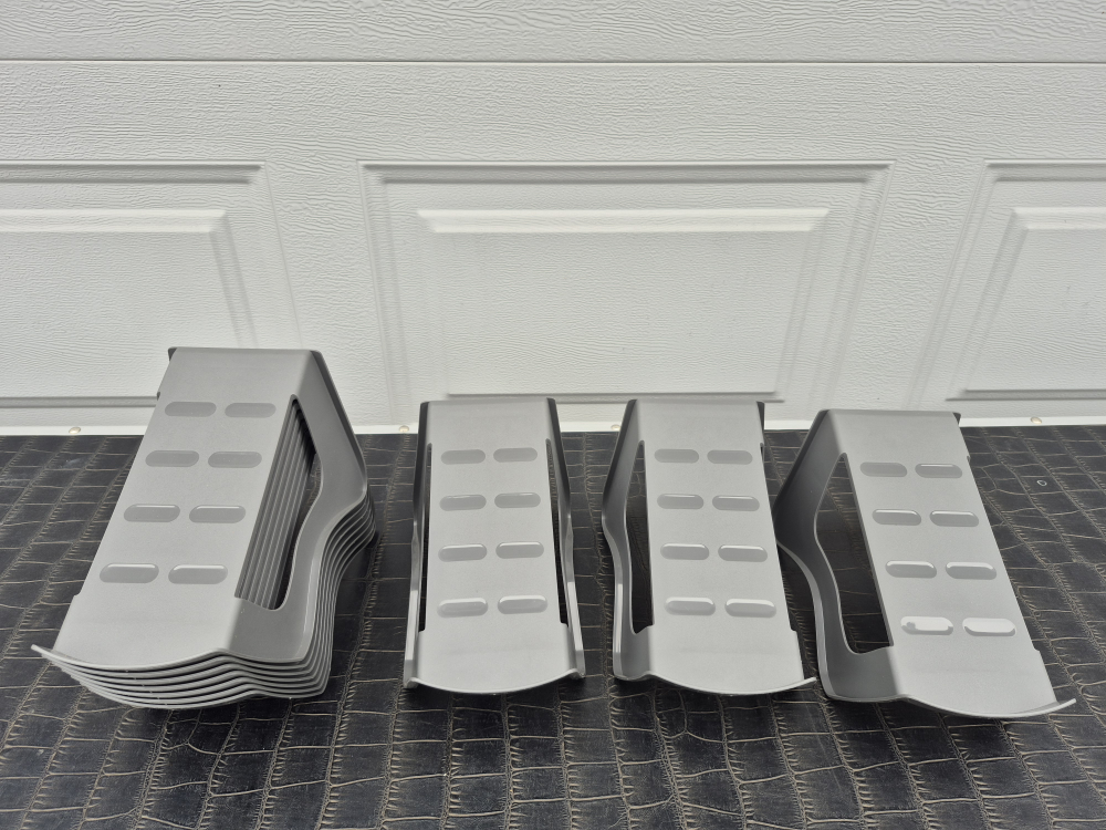 Selling a set of 10 stackable shoe storage units from IKEA! They're in great condition and are perfect for keeping your shoes organized. The units are grey and stackable, making them a space-saving solution for any closet or entryway