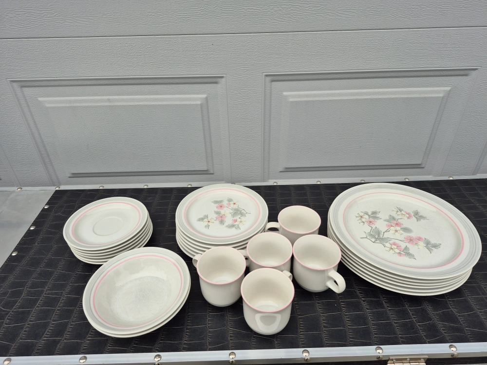 Selling an incomplete set of vintage Mikasa 'Whole Wheat' dinnerware! Some pieces have been lost to time. This set includes plates, bowls, and mugs, perfect for a full dining experience. The design features a delicate floral pattern, adding a touch of elegance to your table. Great for everyday use or special occasions!