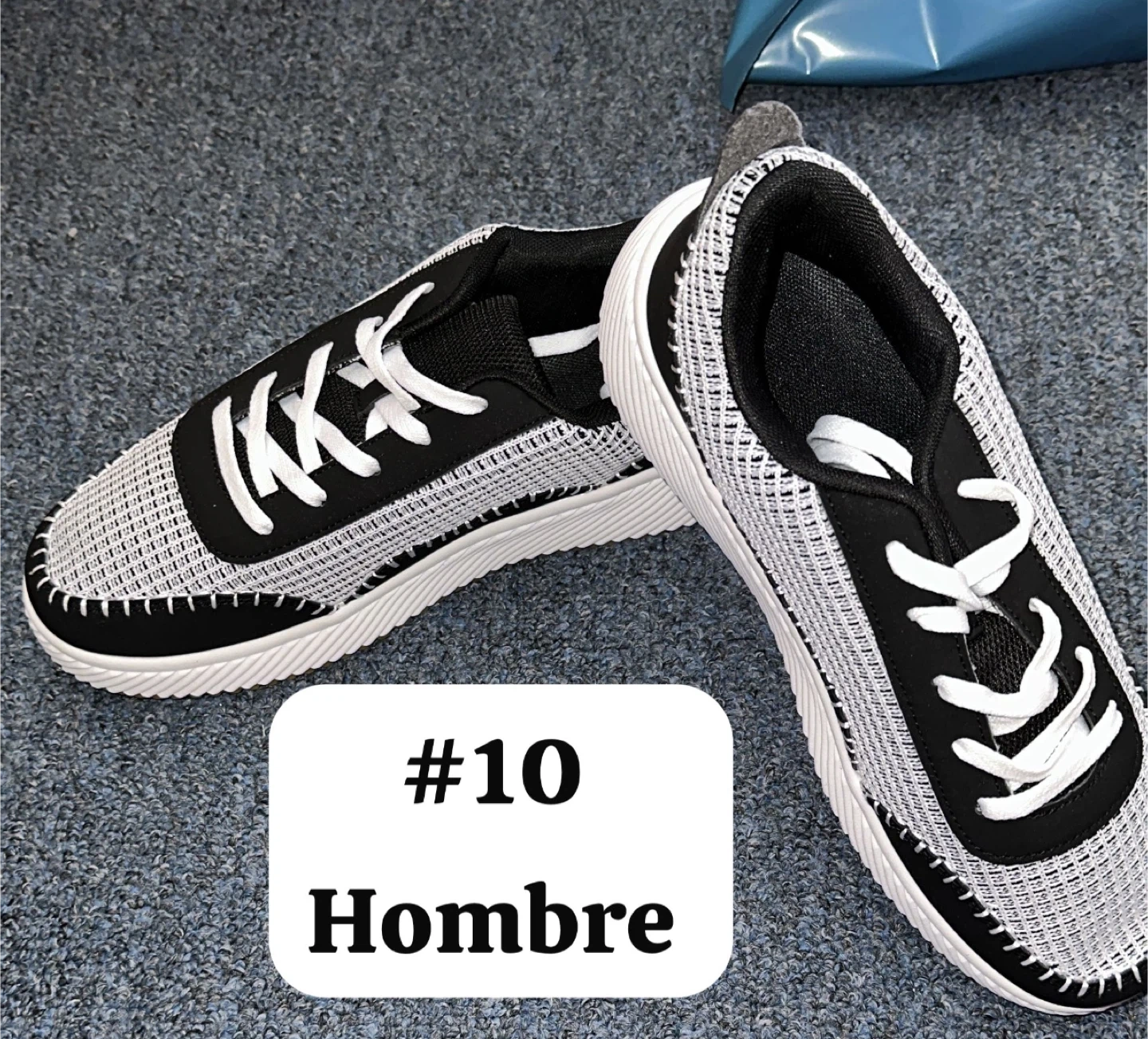 Selling a pair of Hombre sneakers in black and white! These are size 10 and feature a stylish design with white laces and a comfortable sole. Great for casual wear!