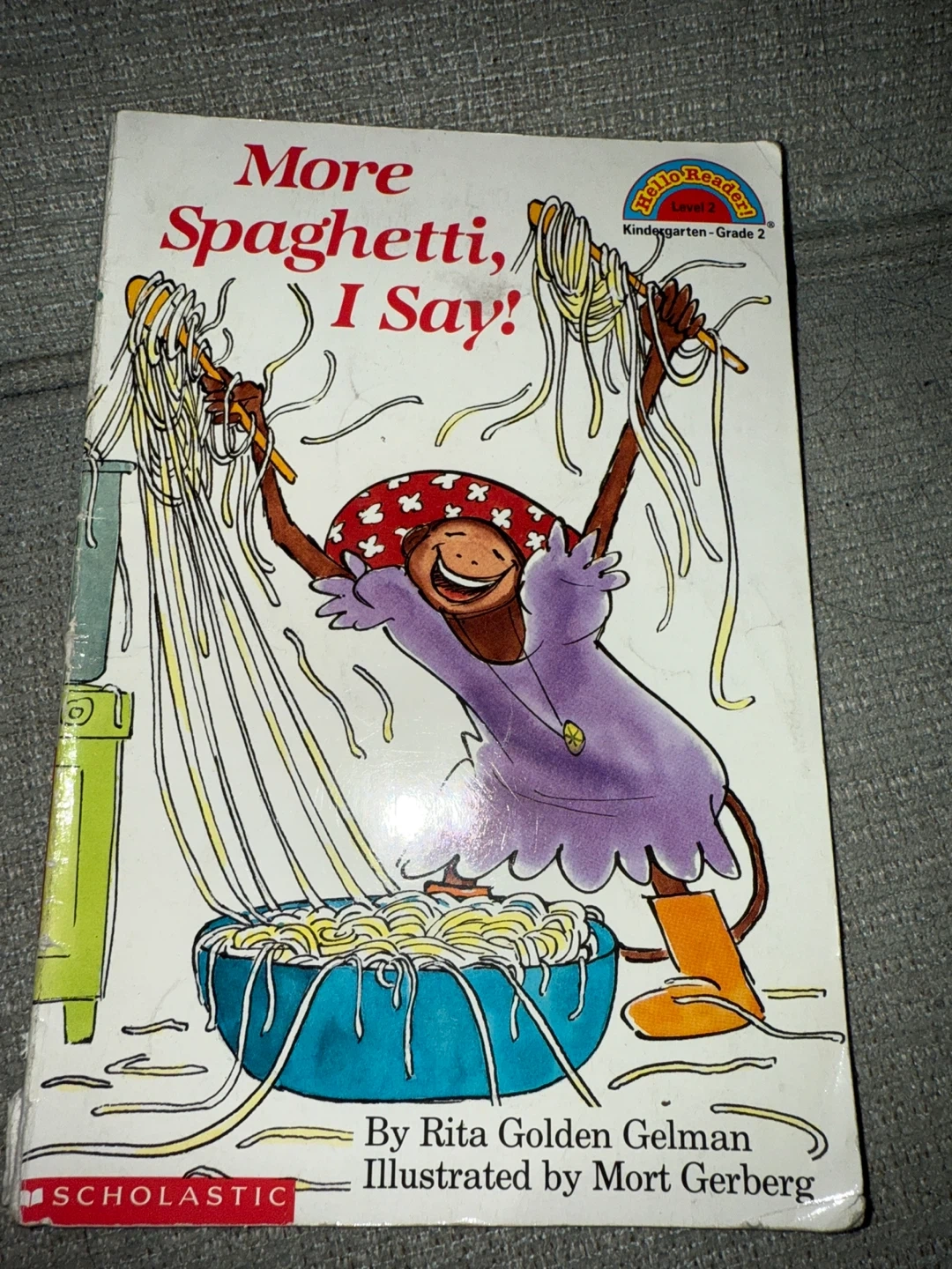 I’m giving away the children's book "More Spaghetti, I Say!" by Rita Golden Gelman. It's a Hello Reader! Level 2 book, suitable for kindergarten to grade 2, ages 5-7. This book is part of the Hello Reader! series and is published by Scholastic. Great for vocabulary and sentence length practice!