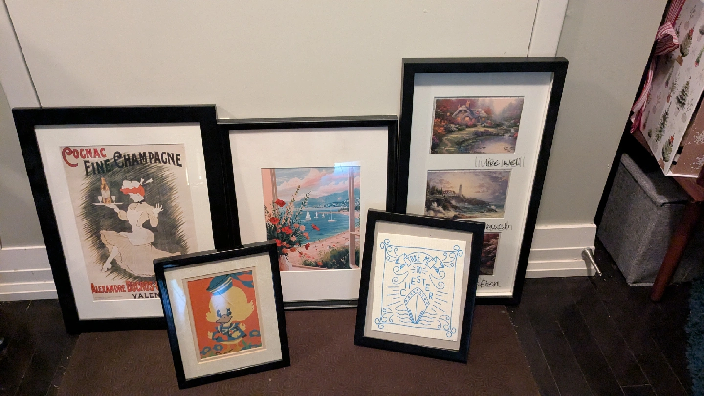 All for $30 Selling a collection of frames. Seven have glass fronts. There's a variety of sizes, perfect for adding a touch of personality to your space. Some artwork can be included if desired.