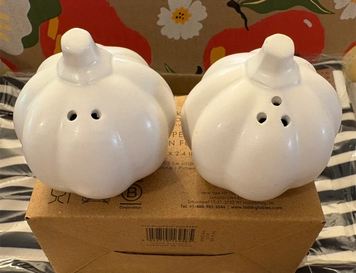 Add a touch of autumn charm to your table with these adorable pumpkin-shaped salt and pepper shakers from Talking Tables! They come in their original box and are ready to spice up your meals. The shakers are 2.4 x 2.4 inches 😊
