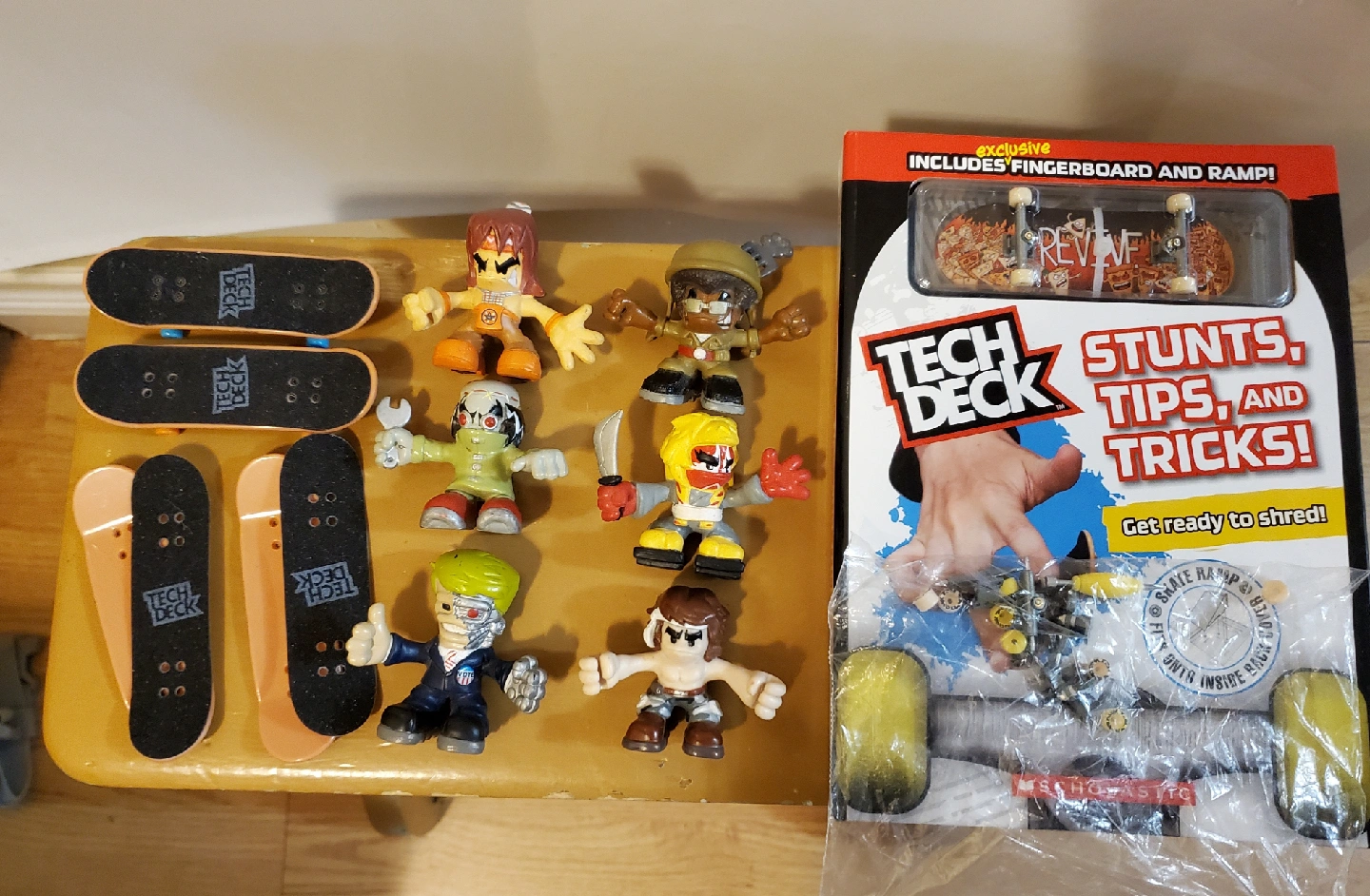 Selling a bundle of Tech Deck fingerboards and Dudes! This set includes fingerboards, action figures, and a ramp. It's packed with tips and tricks to help you become a Tech Deck master. Recommended for ages 7+ The Tech Deck Dudes donot come with original Magnetic Decks.