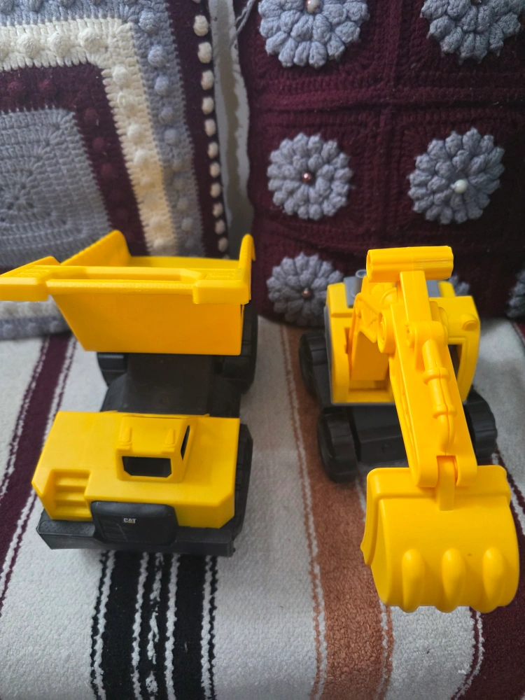 Selling a CAT construction truck set! Includes a dump truck and an excavator, both in bright yellow. Perfect for little construction enthusiasts!