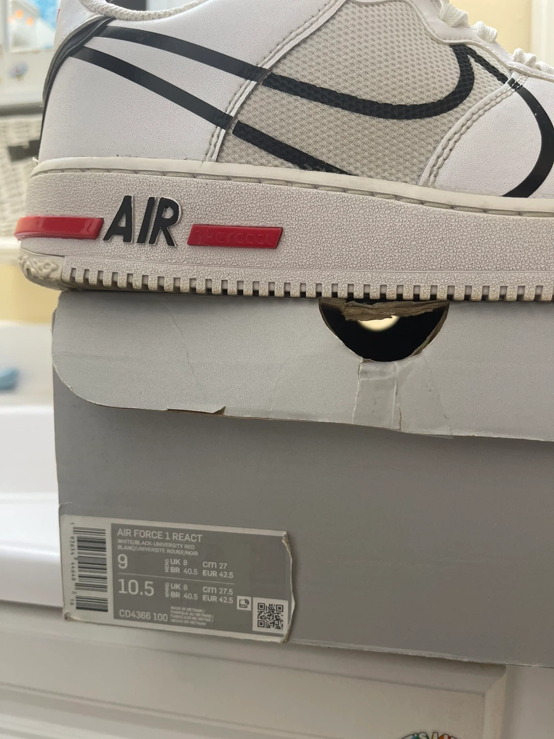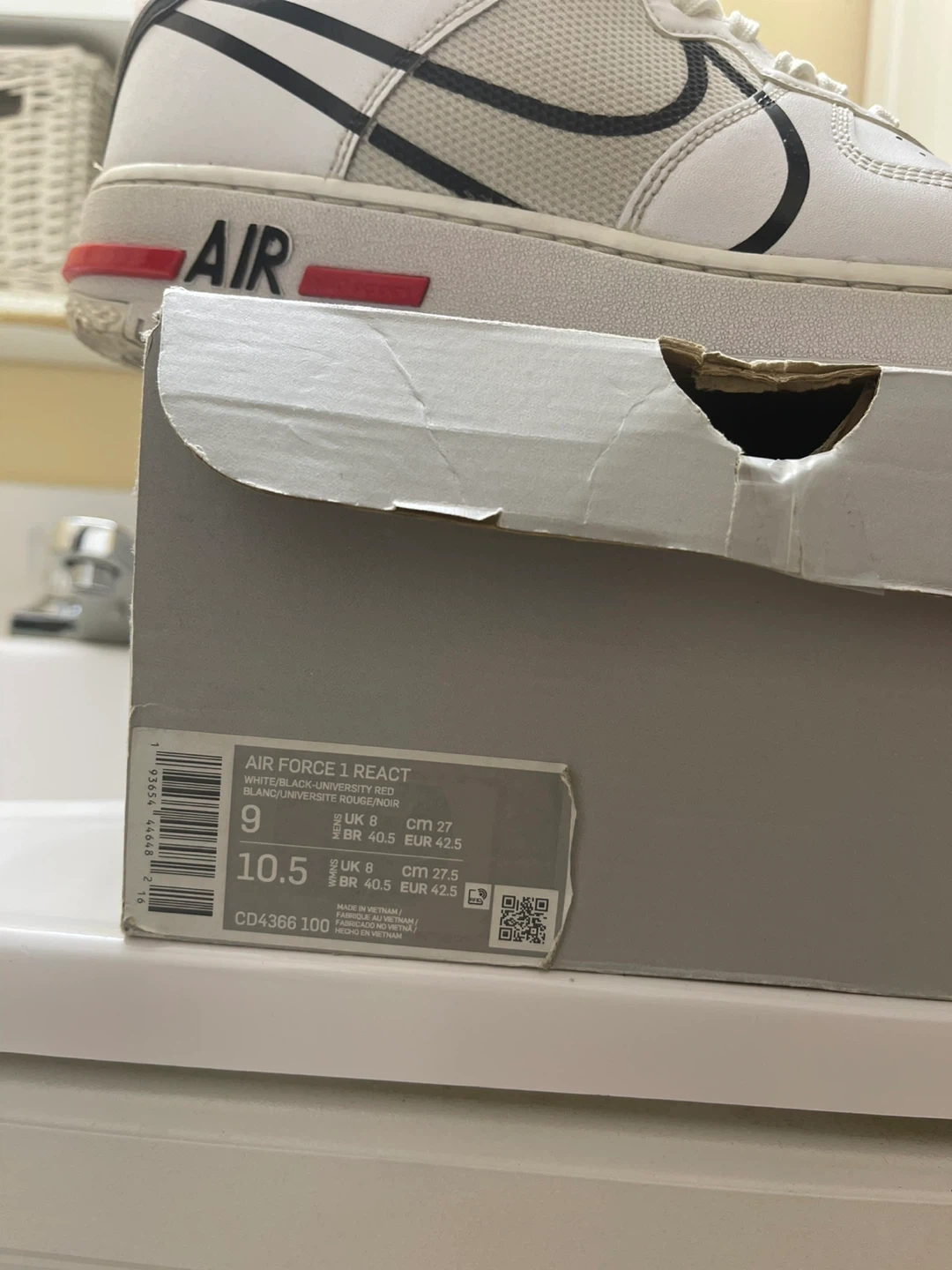 24Selling a pair of Nike Air Force 1 React sneakers in white! These are in great condition and come with the original box. The size is 10.5 US.