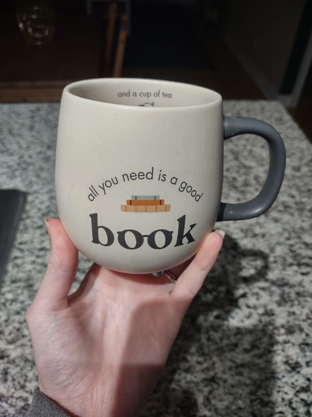 30Cozy up with this adorable mug! It features the phrase "all you need is a good book" and a cute stack of books design. Perfect for tea or coffee while you dive into your next read Pickup at Eglinton and Redpath with cash payment