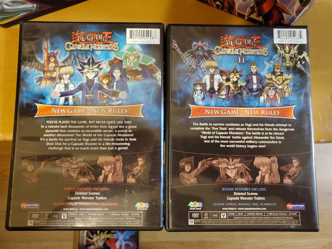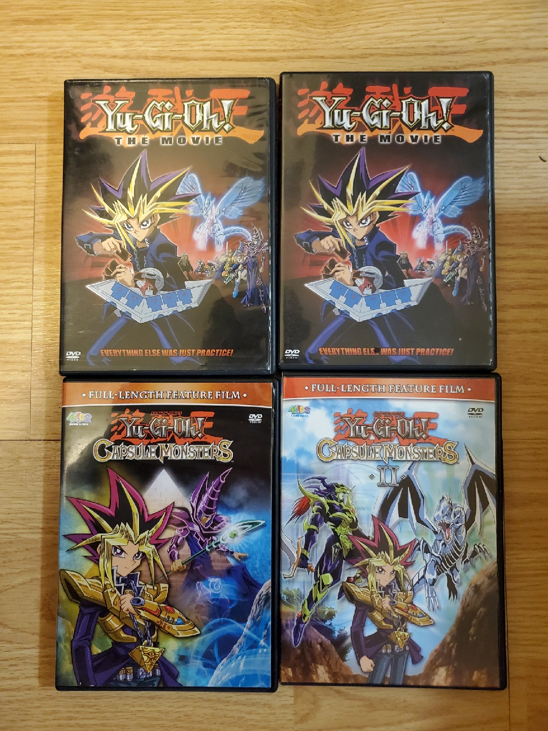 all 4 for 40$ cash or 5$ each for Yu-Gi-Oh! the Movie and 20$ each for Capsule Monsters 1 and 2 DVDs.