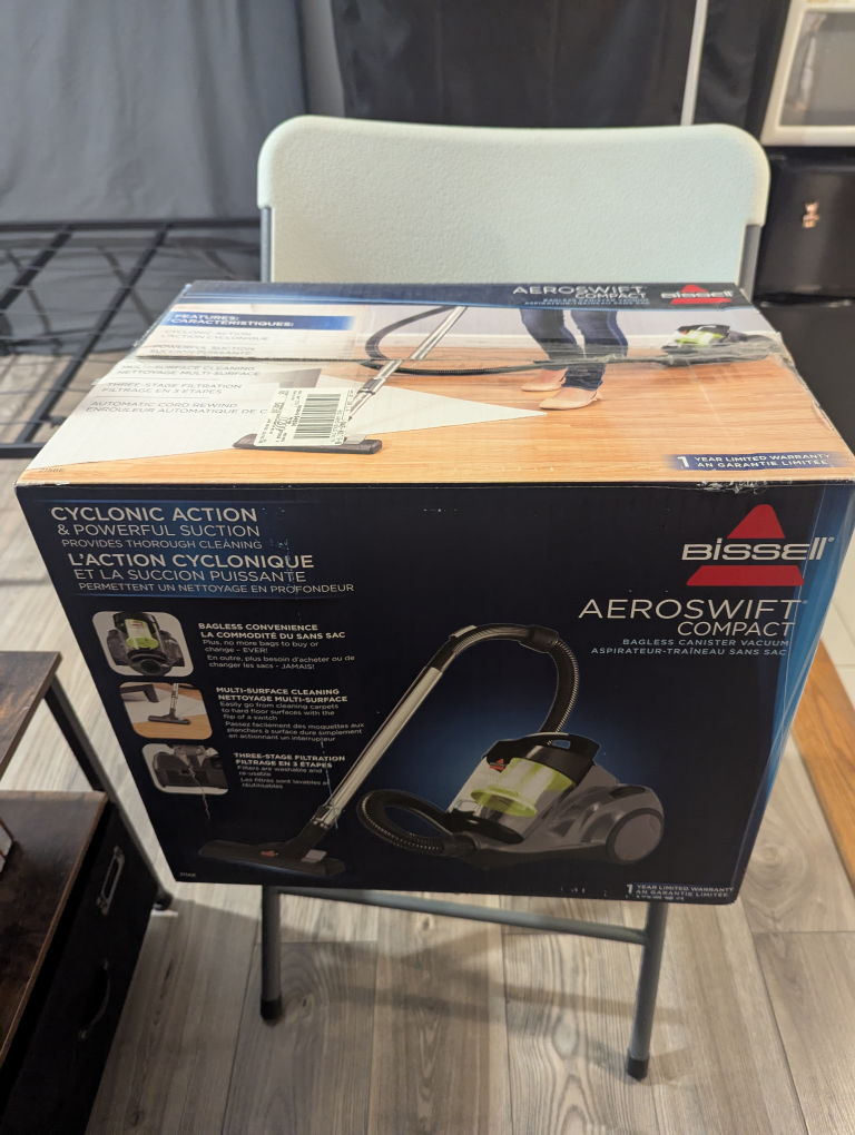 Selling a Bissell AeroSwift Compact bagless canister vacuum! It has cyclonic action and powerful suction for thorough cleaning.