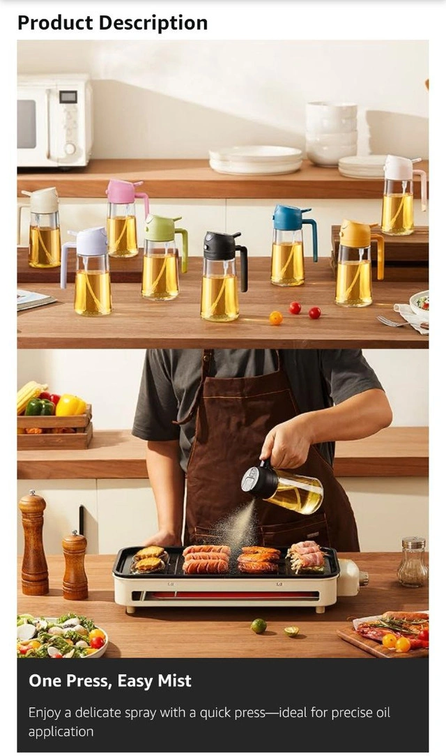 2-in-1 Oil Dispenser & Sprayer – 470ml / 470ml Olive Oil Spray Bottle for Kitchen Gadgets - 2 in 1 Olive Oil Dispenser Bottle ✨Great Sale: Amazon price: $13,99 My price is only $5 Upgrade your kitchen with this multi-purpose 2-in-1 oil dispenser and sprayer – perfect for healthier cooking and easy food preparation! ✨ Features: ✔️ Combines oil dispenser and vinegar sprayer in one ✔️ High-quality, BPA-free thickened glass – safe, odorless, and durable ✔️ Efficient oil control – 0.2 ml spray per press for even coverage and reduced oil use ✔️ Large 470ml capacity – refill less often, wide opening for easy refills without spills ✔️ Multi-purpose – ideal for oil, vinegar, soy sauce, salad prep, grilling, baking, watering plants, and cleaning Condition: Brand New in Box Price: $5 is firmed Pickup: T2W 5C8 Cedarbrae SW Payment: Cash only Message me for photos, details!