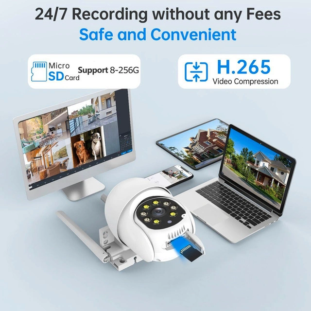 Keep your home, office, or shop safe with this versatile 1080P security camera featuring smart night vision and two-way voice intercom. Monitor anytime, anywhere with remote access via your phone. Features: Crystal-clear 1080P HD video day and night with intelligent full-color night vision Flexible rotation: 350° horizontal & 90° vertical for full coverage ️ Two-way voice intercom for real-time conversations with family, friends, or pets Motion tracking to automatically follow movement ⚙️ Easy installation and one-click mobile phone setup Ideal for home, office, school, or shop security How to Use: 1.Download and install the application 2.Check the wireless network environment 3.Configure network access settings 4.Supports up to 128GB FAT32 format Micro SD card (not included) 5.Must be connected to a power supply for continuous operation Package Includes: 1 x Security Camera 1 x Reset Pin 2 x Expansion Tubes 2 x Screws 1 x USB Cable 1 x Manual Condition: Brand New in box (power adapter not included) Brand: Boykeep (www.boykeep.com) Price: $20, price is firmed! Great deal : 2 pcs cost $30 Pickup: T2W 5C8 Cedarbrae SW NO HOLDS! Message now to order or learn more!