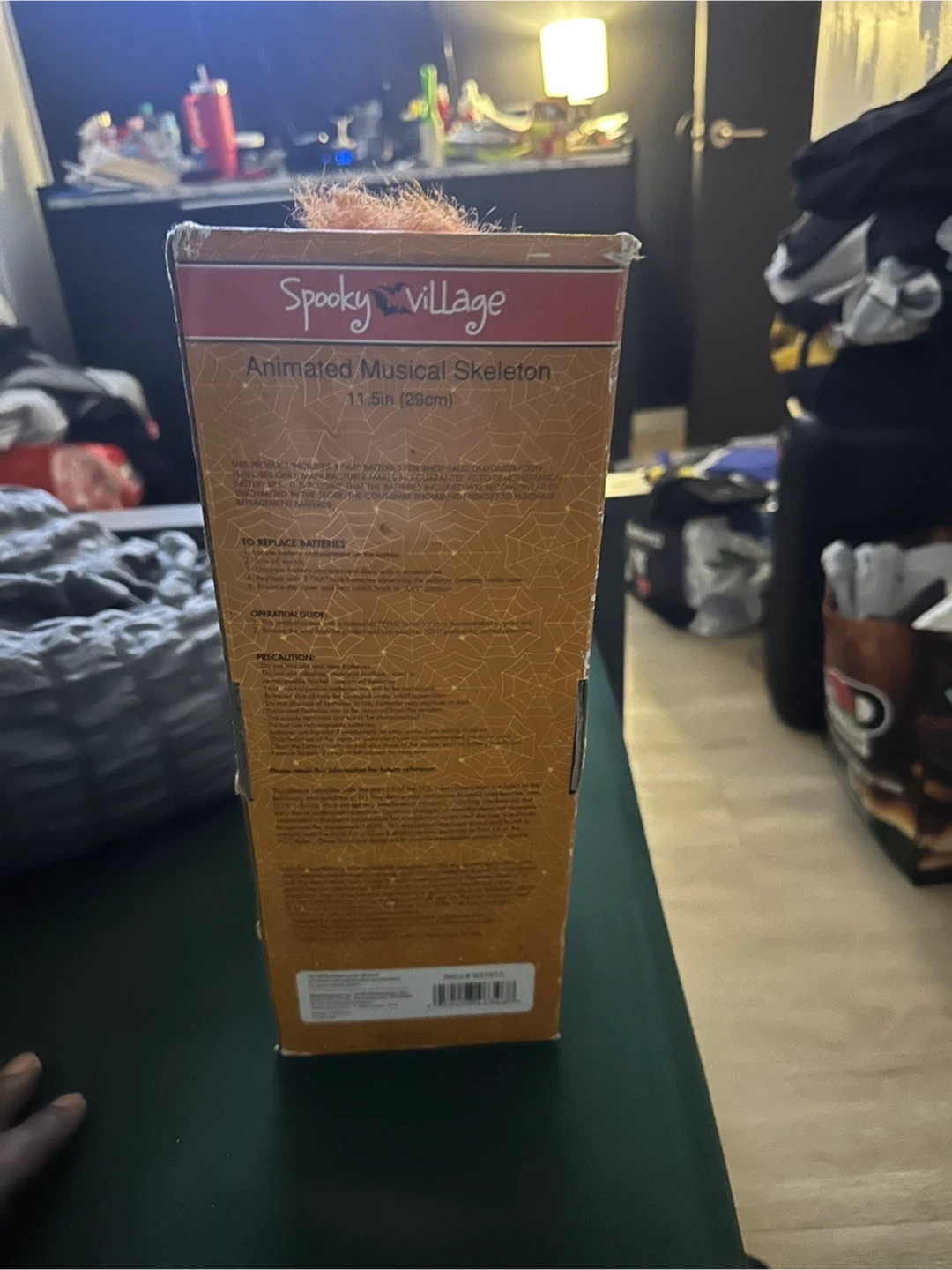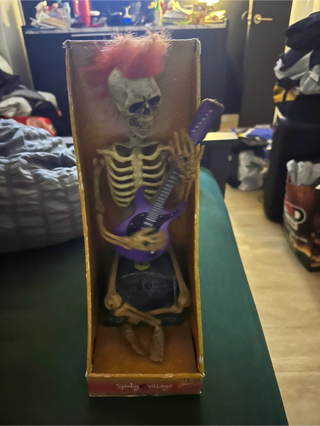 Selling a Spooky Village Animated Musical Skeleton, standing 11.5 inches tall! It's in great condition and comes in the original box. This fun skeleton plays music and is ready to add some spooky vibes to your space!