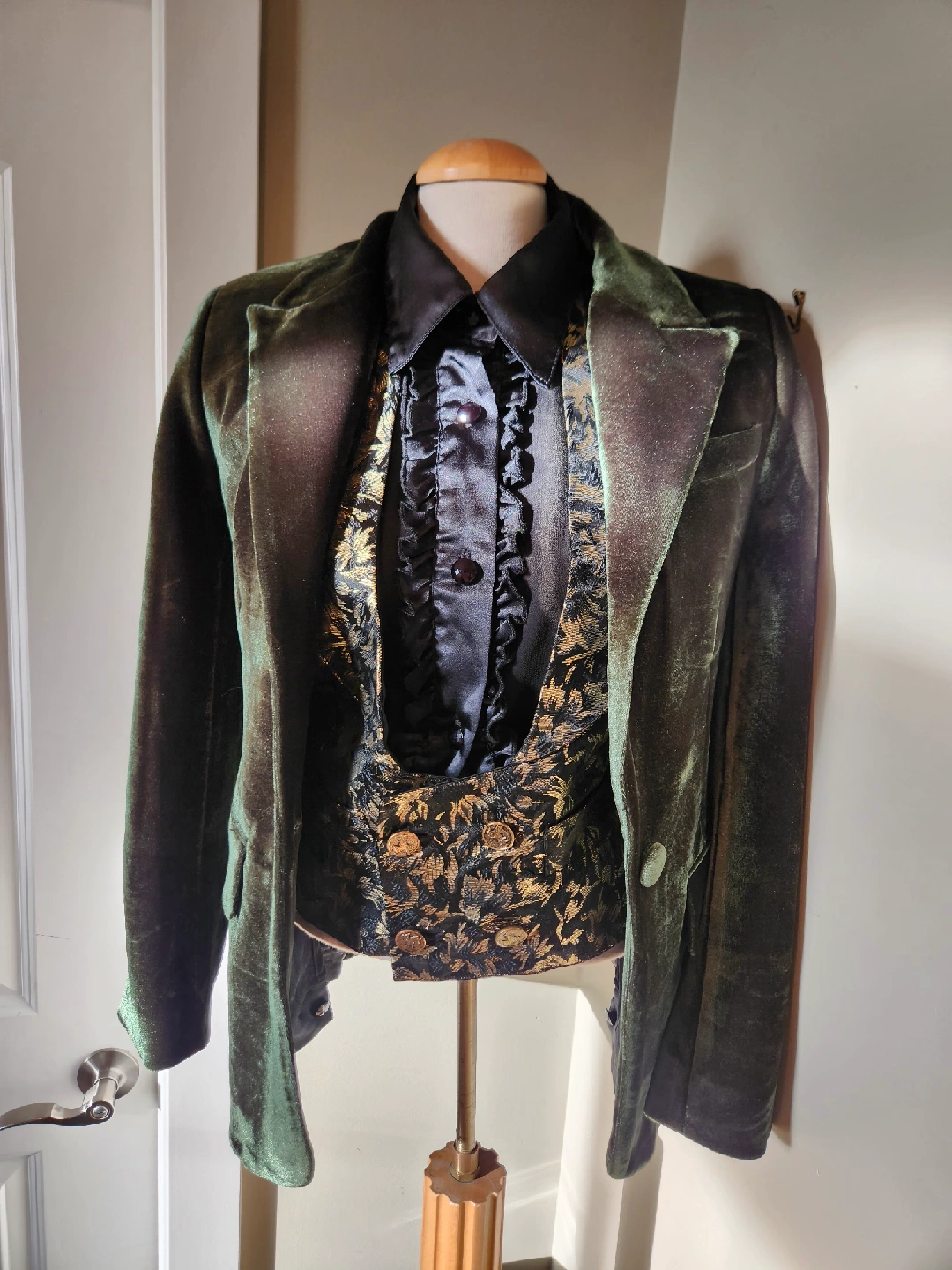 Suitable for Vampires, Gunslinger or lovers of Dark gothic fashion! Has a beautiful pattern and double button details. Perfect for adding a touch of elegance to holloween Costumes or any outfit that needs the elegant detail this vintage vest brings! fits size small/medium women. Check my profile to see SIMILAR ads AND FOLLOW for more VINTAGE VELVET AND Stay tuned for more gothic and dark cottage core clothing finds!