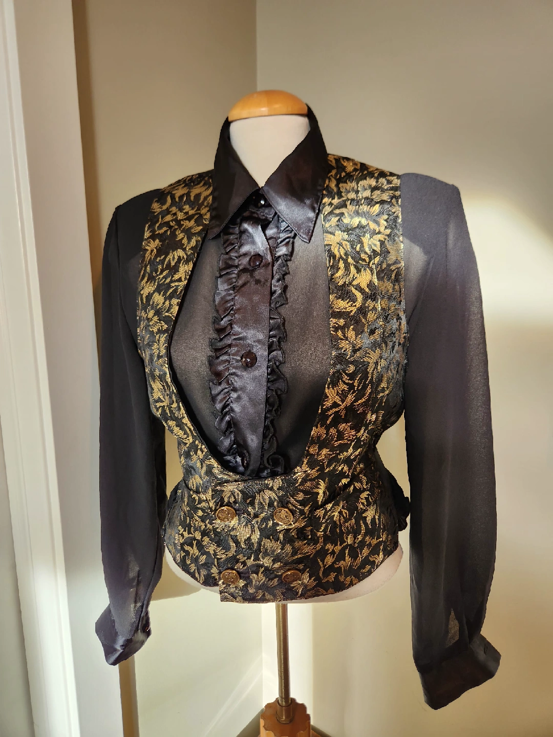 Unique black and gold tapestry vest. wonderful Dark gothic fashion