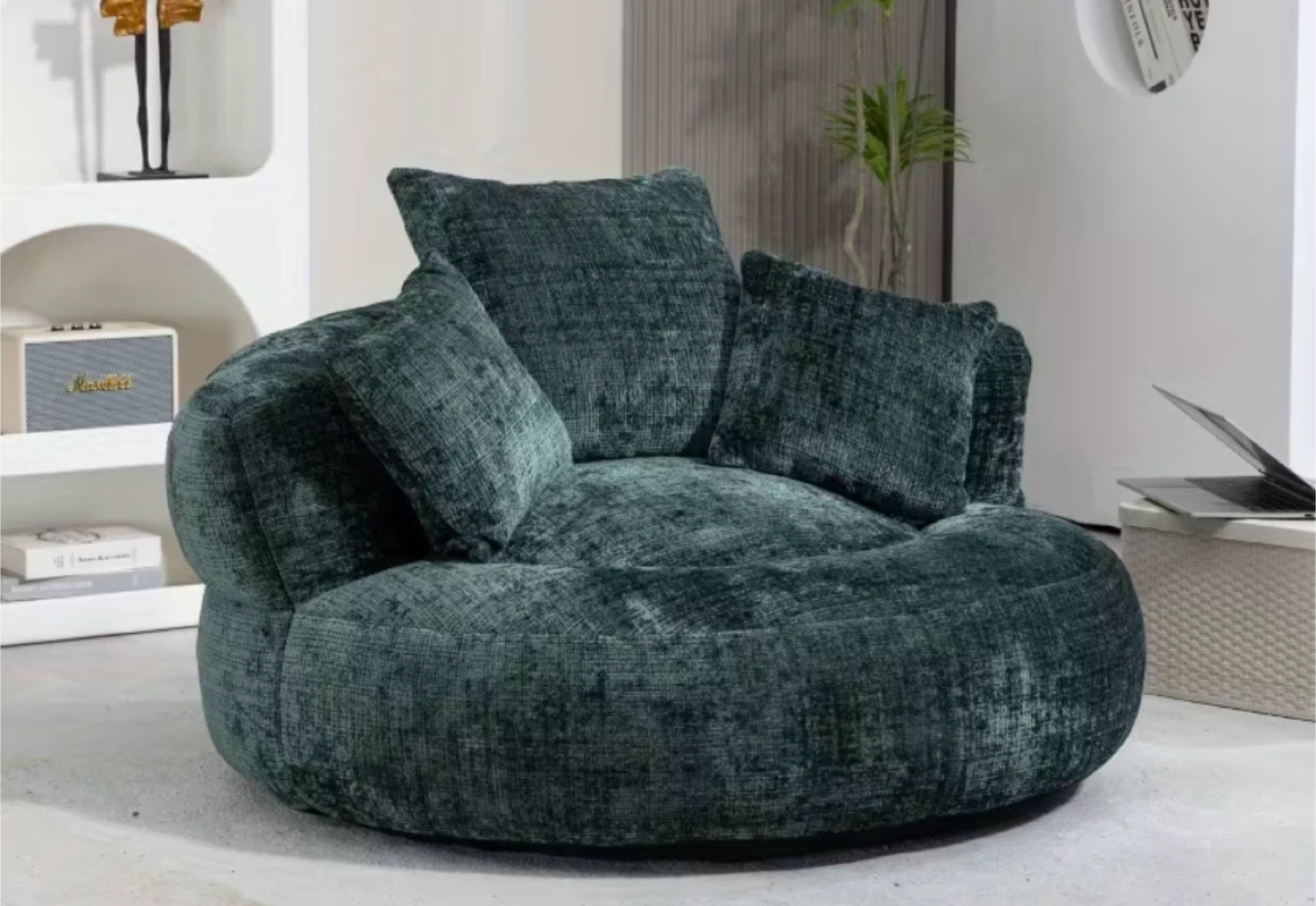 Brand New Emerald Green Chenille Round Bean Bag Sofa