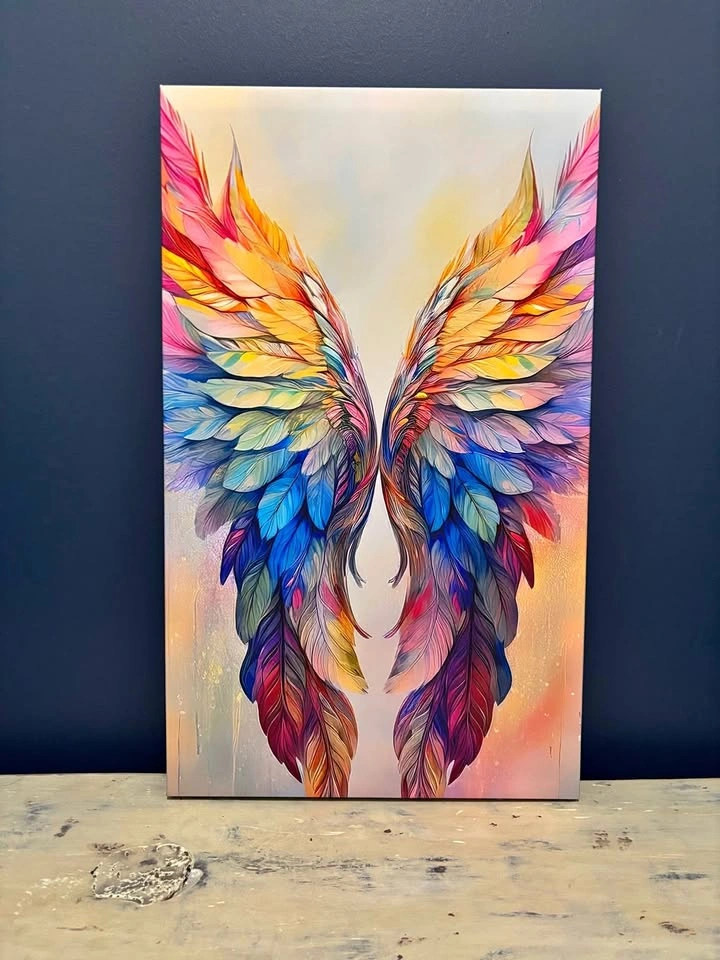 Colourful angel wings print on canvas. Beautiful matte finish, 19.7”X11.6X1.5”. Ready to hang if required. Beautiful light weight wall art. Pick up in North Bowmanville near Middle Rd and Northglen Blvd.
