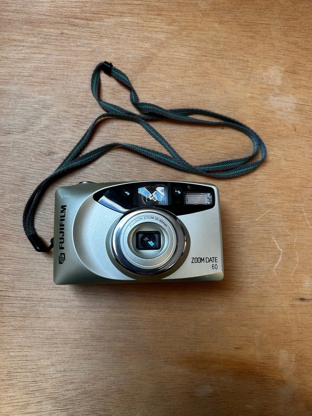 Capture memories with this used Fujifilm Zoom Date 60, a compact and easy-to-use film camera perfect for everyday snapshots. It features a zoom lens for flexible framing and a built-in flash for various lighting conditions. This camera is in good working condition and ready to shoot. It's like having a time machine, but instead of altering the past, you're preserving the present! Please note, if the ad is up, the Fujifilm Zoom Date 60 is still available, so you can start snapping your way to vintage-inspired photos right away! Never used.