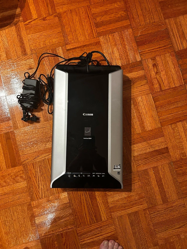 Selling a used Canon CanoScan 8800F flatbed scanner, known for its high-resolution scanning capabilities and versatility with various media types. It's in good working condition, perfect for photos, documents, and even slides. The scanner is a reliable option for digitizing your memories or important paperwork. I am selling because I have upgraded to a newer scanner. Here are some of the features: * 4800 x 9600 dpi resolution * FARE Level 3 Film Automatic Retouching and Enhancement * Scan photos, documents and film with ease * Easy to use buttons. If you're reading this, then yes, it's still available! Please note that this scanner was first introduced in the windows 7 era I do not have a installation cd however newer drives may be available online, please do your own research over software compatibility as I do not know. Cash only