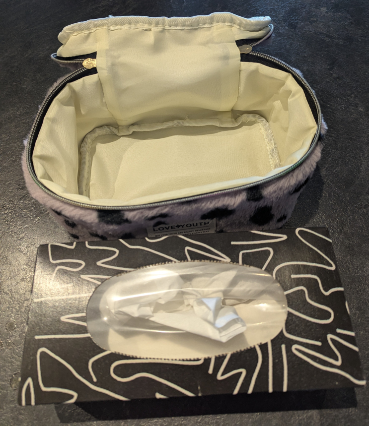 Here's a cute cosmetic bag! Perfect for organizing your makeup or toiletries, whether you're at home or on the go. Brand new
