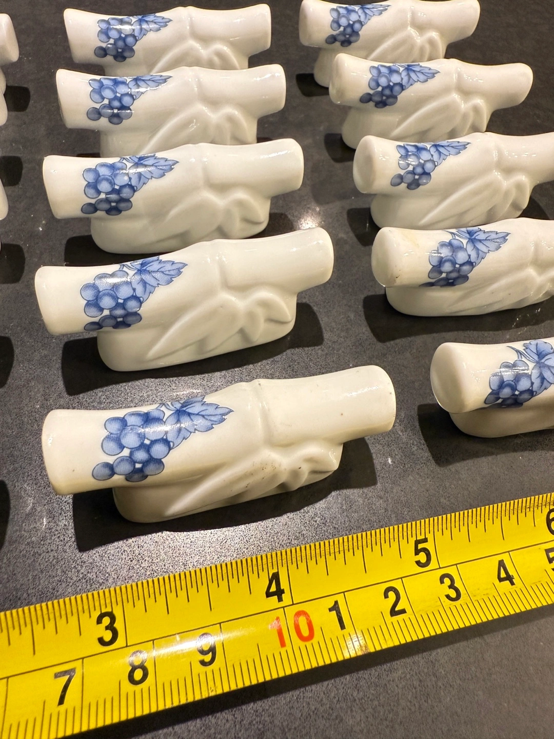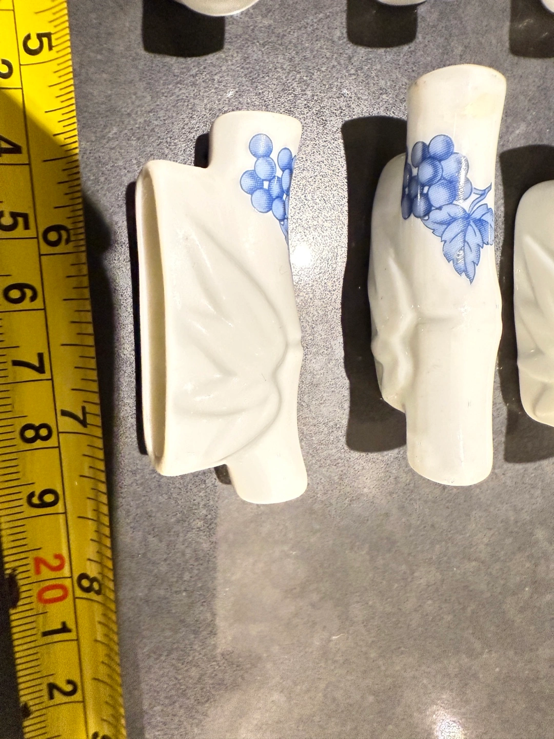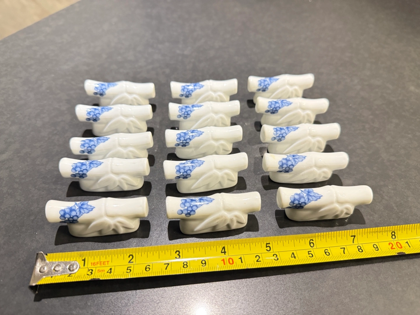 481Here are 15 chopstick stand . white with a blue grape design! They're in great condition and would be a lovely addition to any table setting $1 per stand. Super cheap!