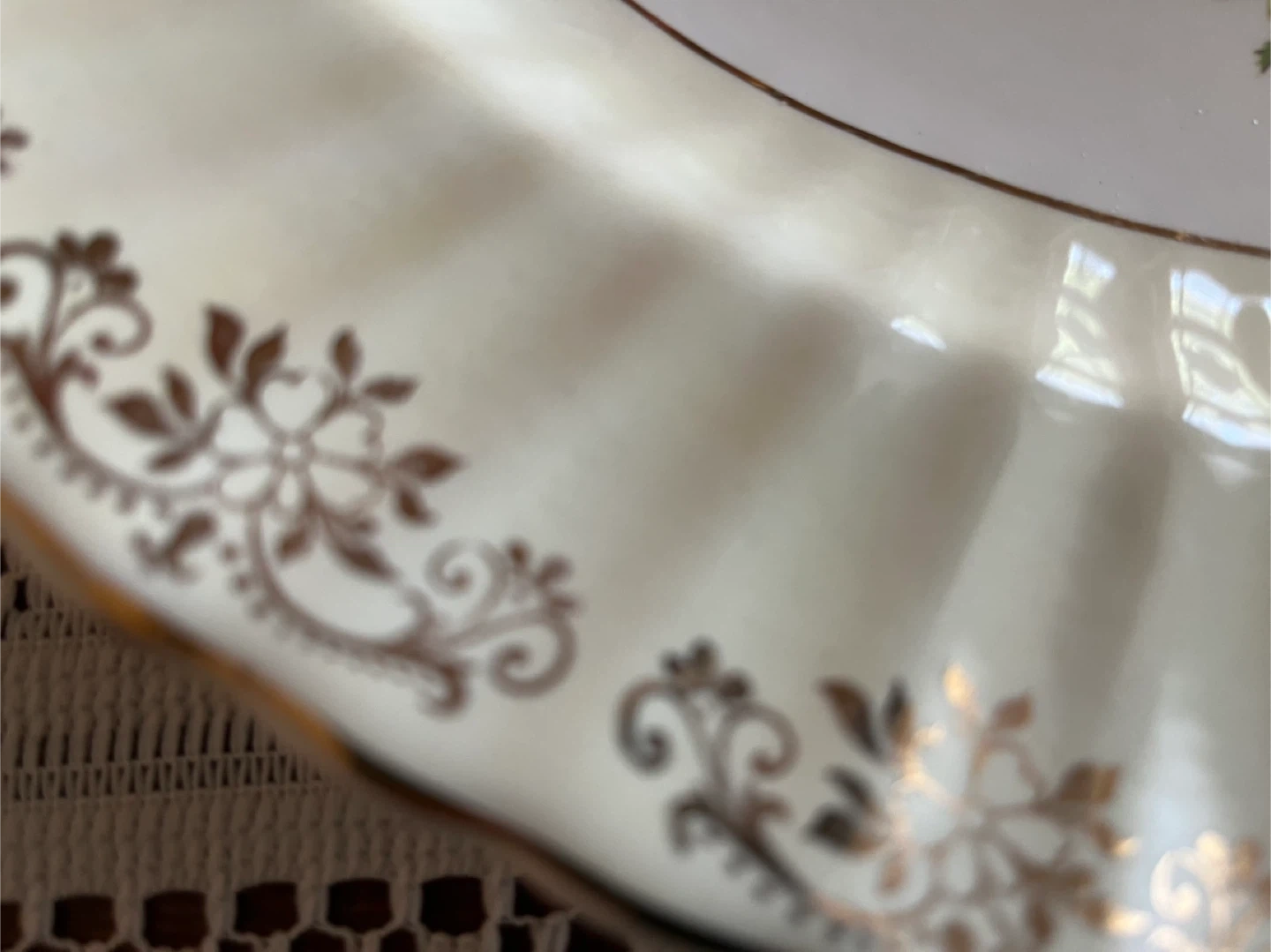 This is a lovely vintage Wade “Cambridge” England 6016 platter, 11x14 inches. It features a beautiful rose design in the centre and a gold floral pattern around the rim. Perfect for serving or display!