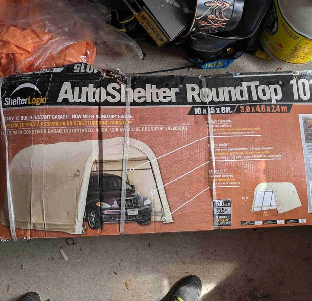 1010ft x 15ft x 8ft. Damaged box, brand new. Located by Mississauga/Steeles depending on time/day. Recommend Van/SUV or bigger vehicle to pick up item.