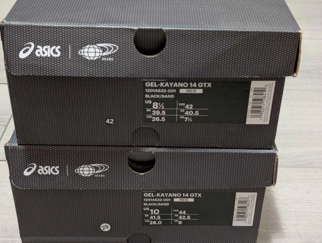 10As the title states, looking to sell another piece from the closet. It is brand new and is 100% authentic. This time around it'll be two pairs of Asics x Beams Gel Kayano 14 GTX's in size 8.5 and 10. My feedback speaks for itself. Pickup is by Mississauga and Steeles or Shelburne depending on time and day. Trades accepted: Pokemon Sealed/Slabs/SIR/SAR *Check other ads for more listings. Bundle deals available
