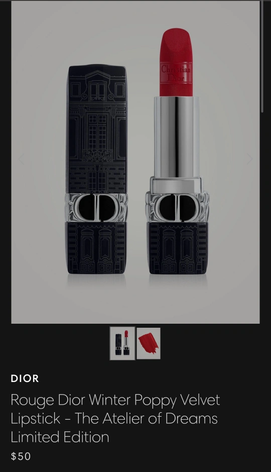 Selling a Dior Rouge lipstick in the shade 862 Winter Poppy Velvet. It's a beautiful red colour and the packaging is so elegant!