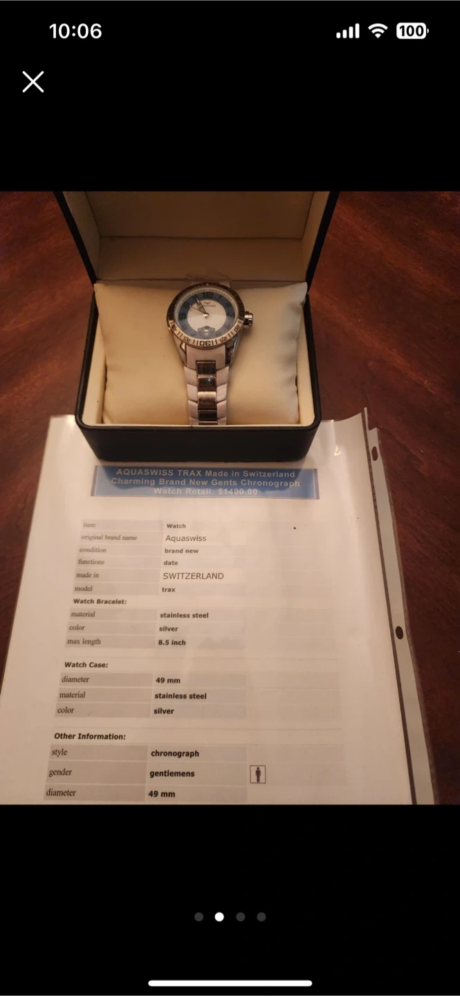 Selling a brand new Aquaswiss Trax chronograph watch!