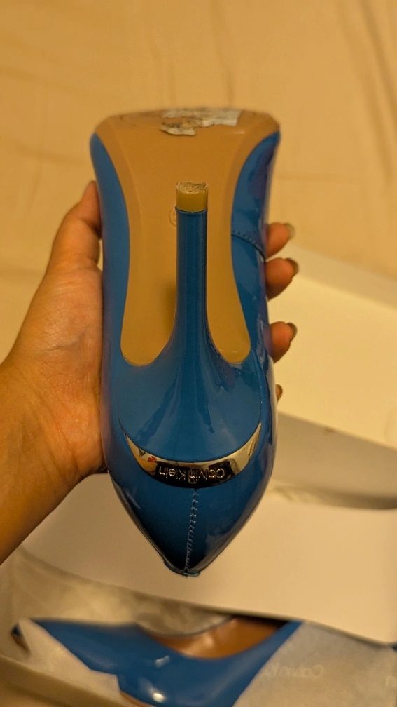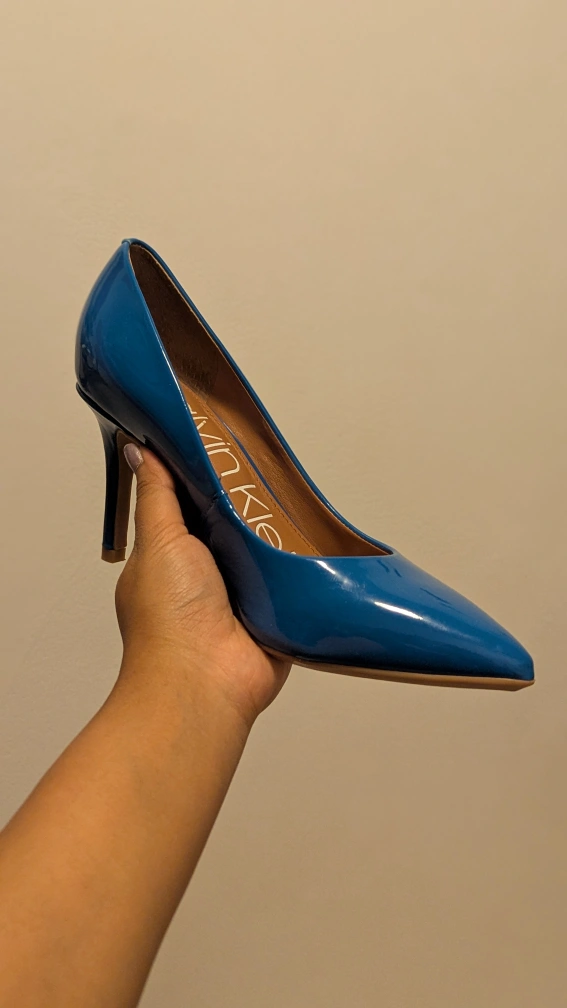 Selling a pair of blue Calvin Klein pointed heels. They come with the box! Worn exactly once to a dinner. They are practically new.