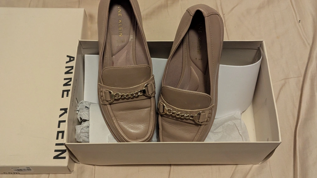 Anne Klein iflex loafers in a nude color. Comes with the original box. Worn once but just weren't the right fit for me.