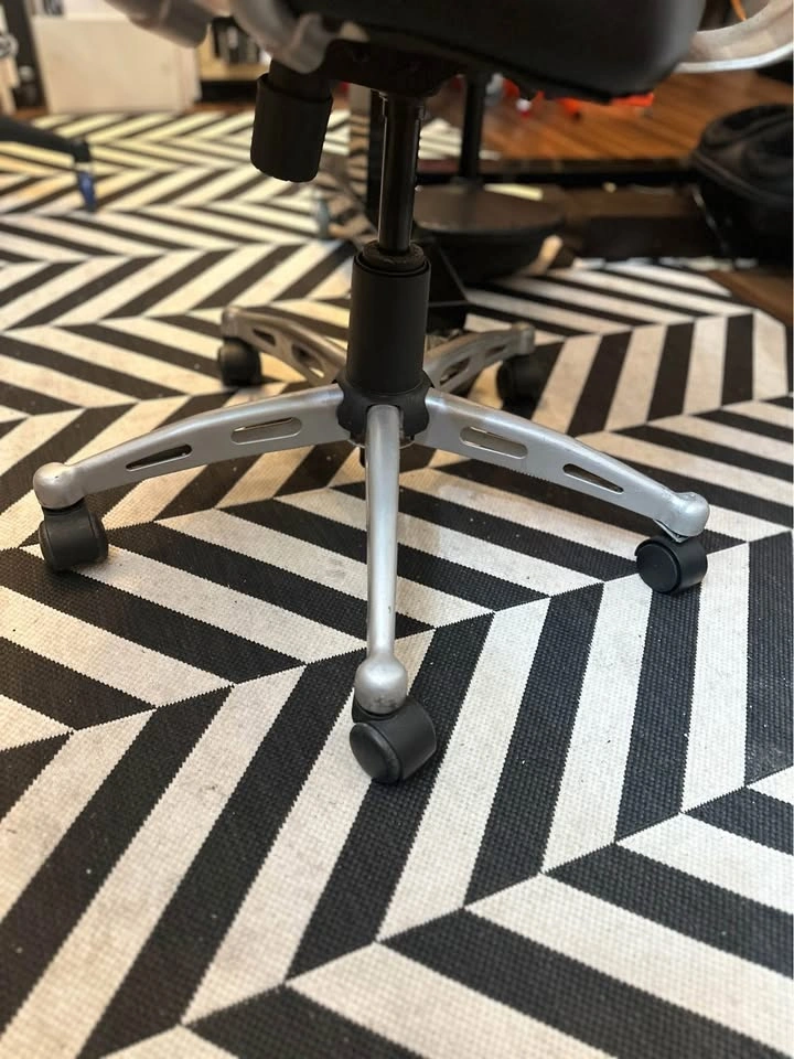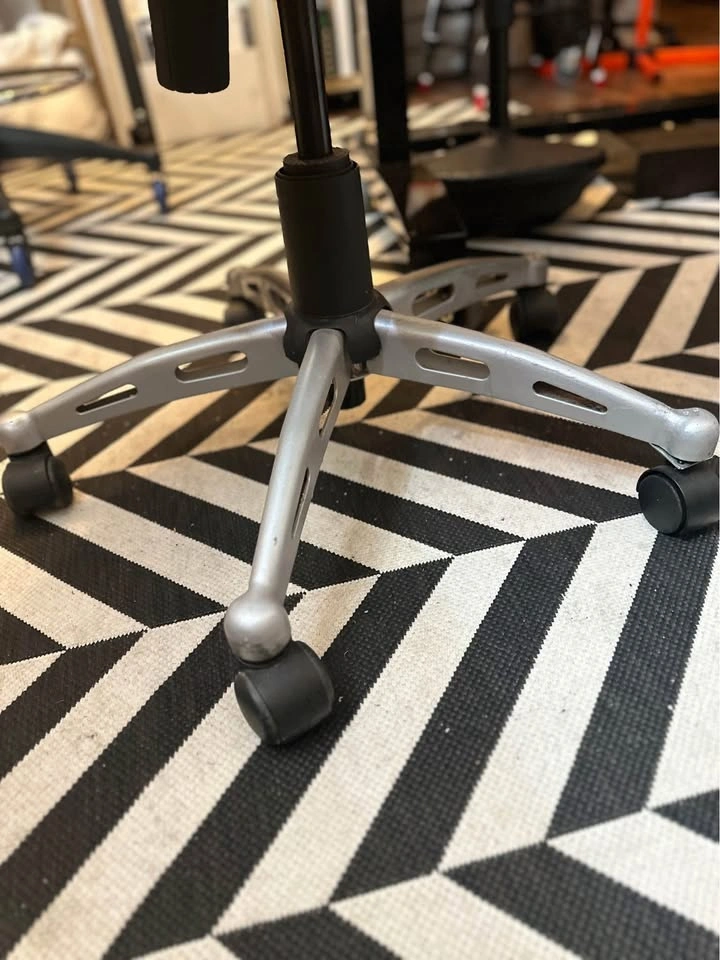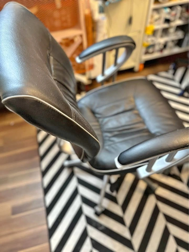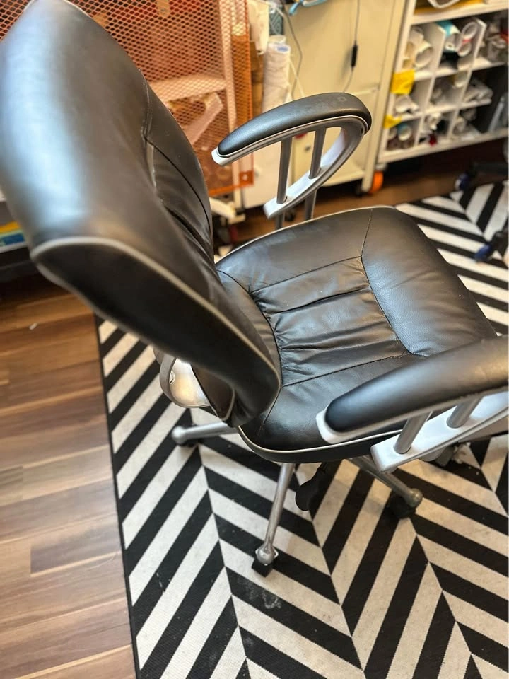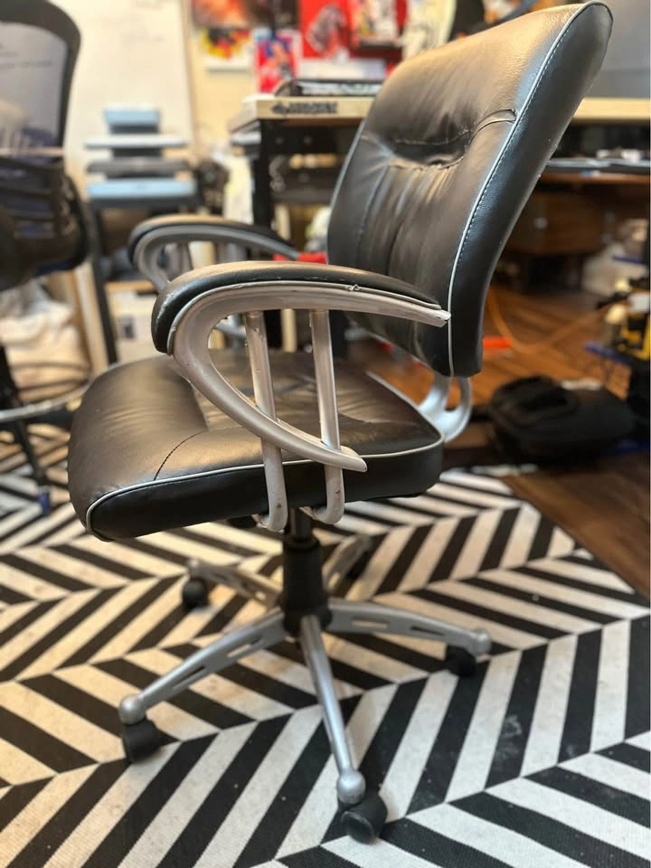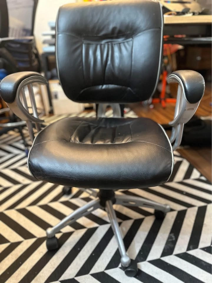comfortable ergonomic office chair with padded bonded leather with sturdy back, swivel base, adjustable height, and smooth-rolling casters. Solid metal frame makes it extra sturdy.
