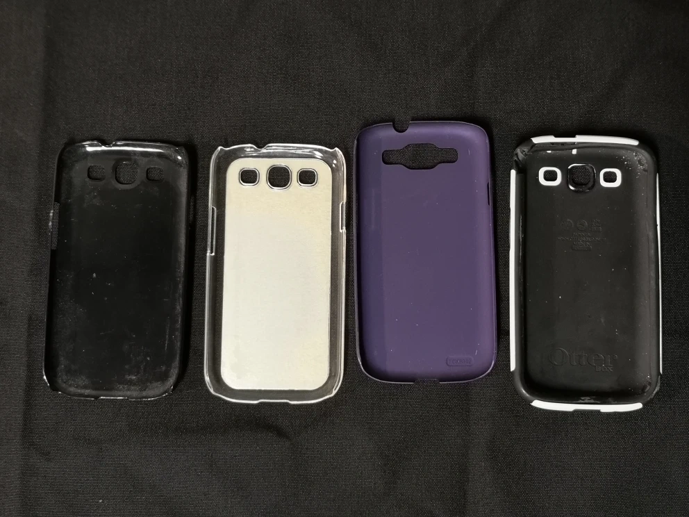 Nice unique cases for Samsung Galaxy S3 $5 each - White shell OtterBox - Purple rubber Incipio - Han Solo in Carbonite - Clear coffee night owl