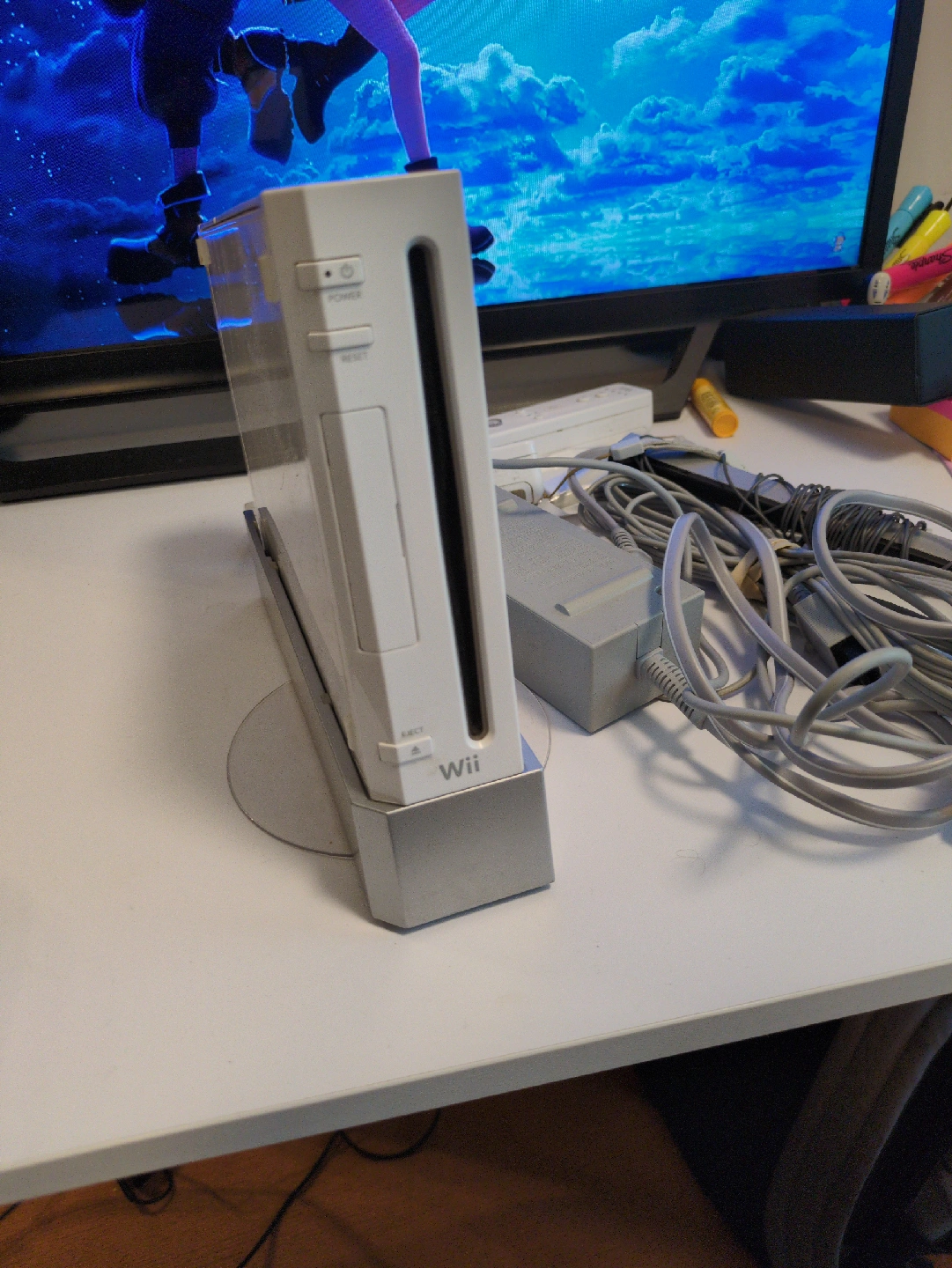 Selling a used Nintendo Wii console. Includes the console, power adapter, AV cables, and Wii Remote. Ready for some classic gaming fun! It includes just dance game. The console works perfectly. I also give an hdmi adaptor with it for your TV π!!! The console includes just dance 3 which is inside