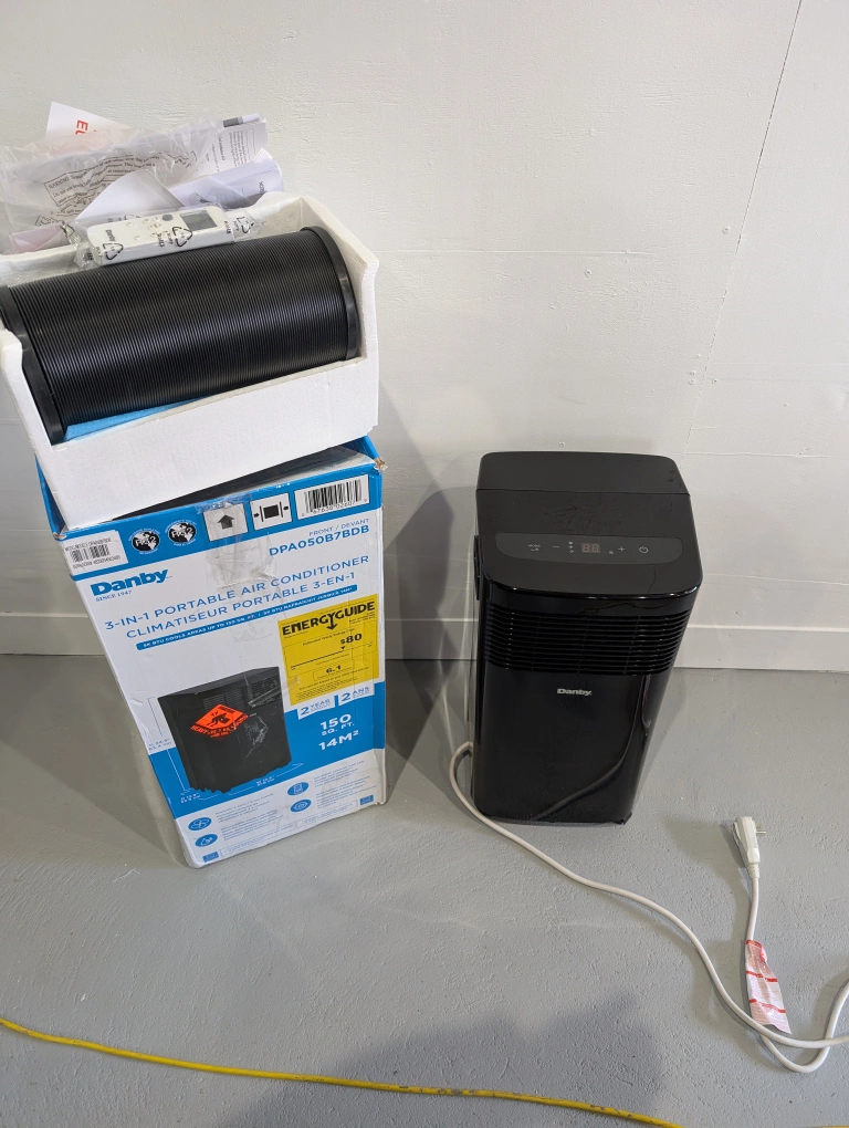 231Brand new Danby portable air conditioners for sale. 7500 and 8500 BTU, 3 in 1 Fan, Cooling AC, and Dehumidifer, programmable timer, LED display, remote, auto restart, $180 FIRM each. AC, Air Condition, Cooling, Heat, Summer, Cool, Fan, Dehumidifier, Air Conditioner, Speed, Timer, Remote, Window, BTU, Room, Dehumidify, Sleep, Comfort, Filter