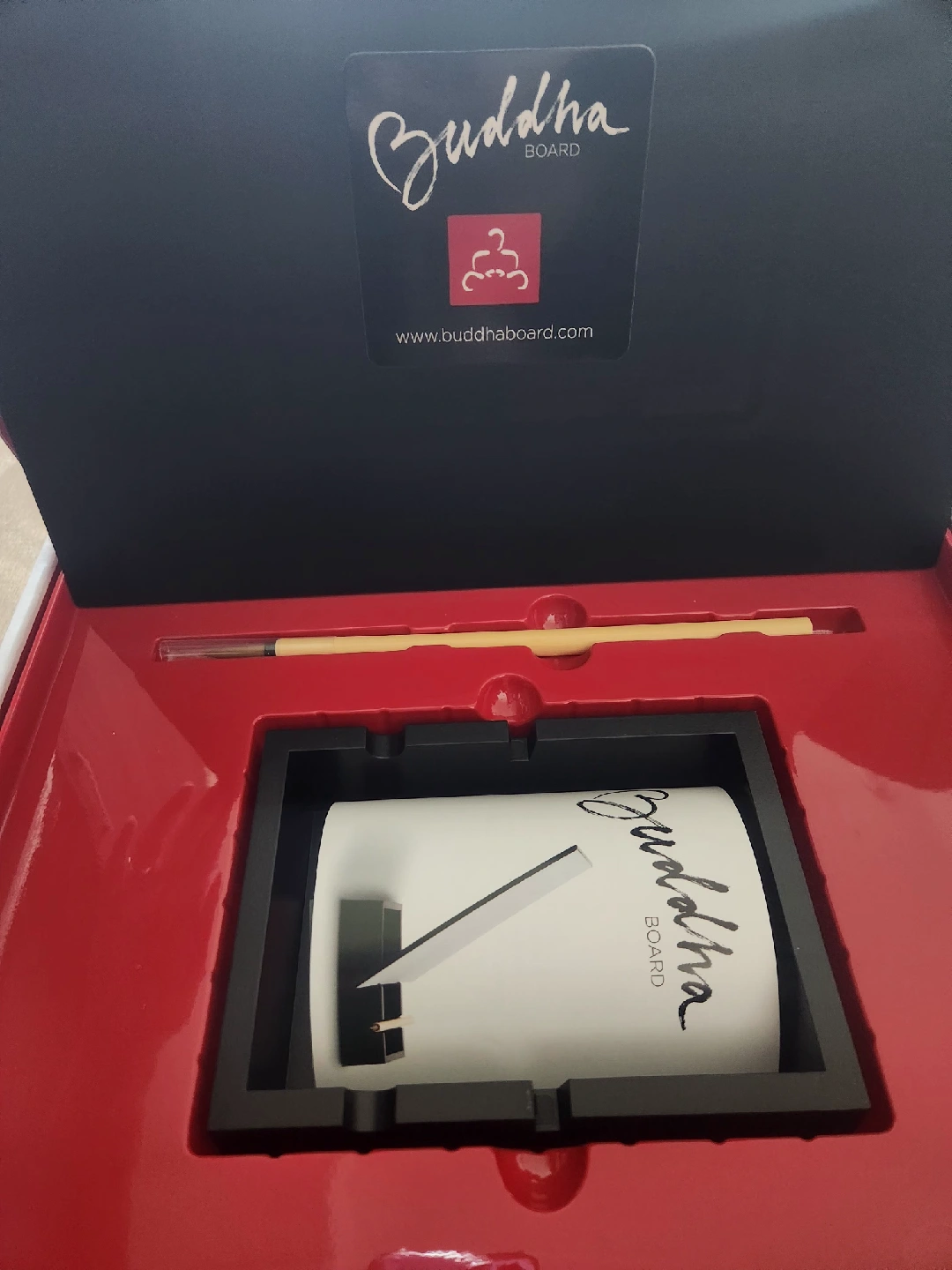 The Buddha Board is inspired by the Zen idea of living in the moment. You simply paint on the board with water and your creation will magically disappear leaving you with a clean board and a clear mind. It is environmentally friendly as it only uses water - no ink, no paint, no chemicals - and it will last for years with proper care. Comes with the box.