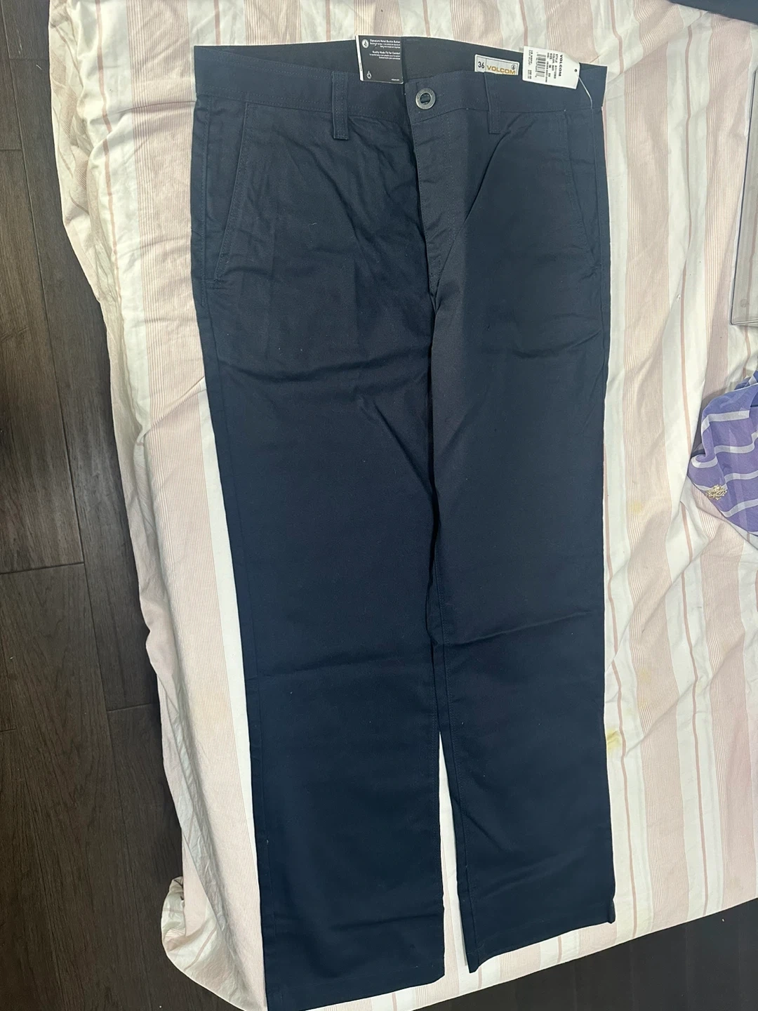 These are a pair of Volcom Men's Frickin Modern Stretch Chino pants in size 36. They're a stylish and comfortable choice for everyday wear! The pants are in great condition and ready for a new home