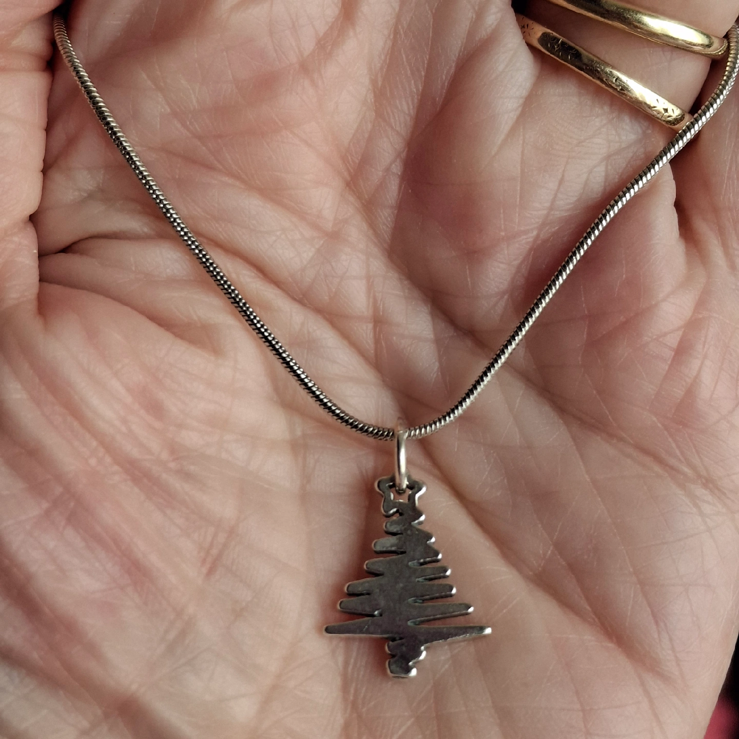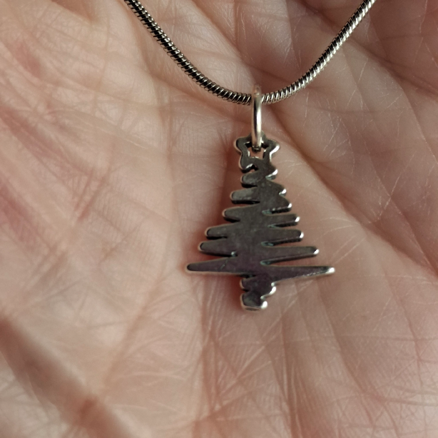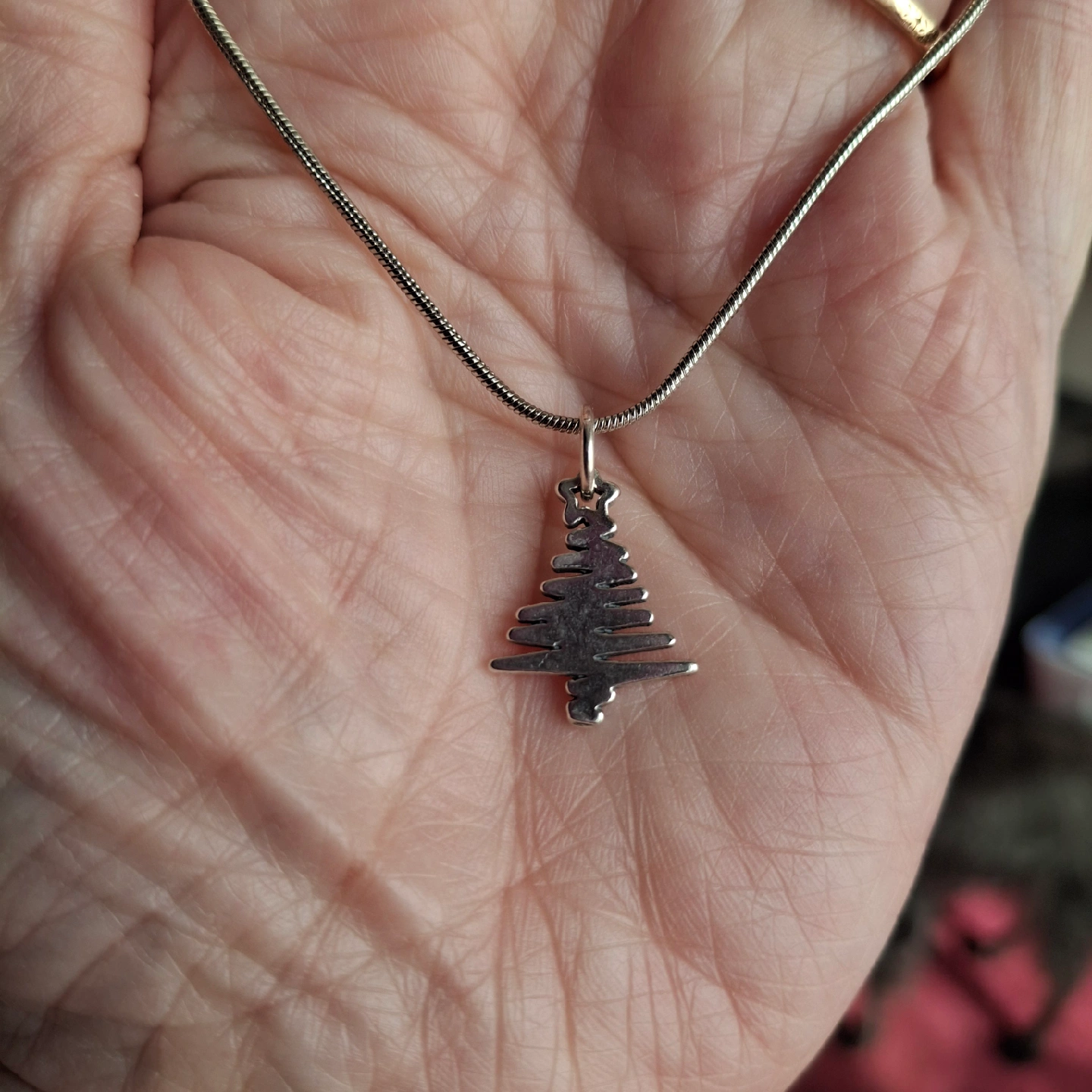 A cute little Christmas tree pendant necklace! It's a sterling silver and perfect for the holidays or any time you want a bit of festive cheer