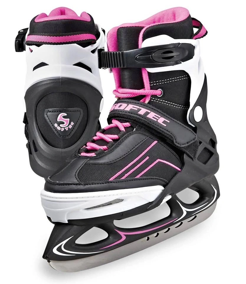 Selling adjustable skates, Medium (Child's Size 2 - Women's Size 6) - Purple Sizing can be adjusted to accommodate growing feet Soft boot with external skeletal structure provides comfort and support Recreational blades attached are factory sharpened Skates are practically new, as it was lightly used one-time.