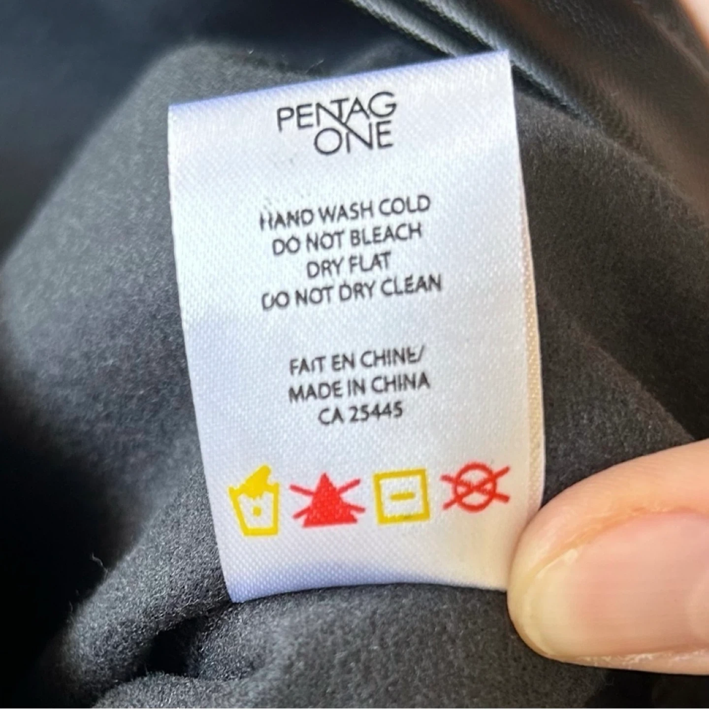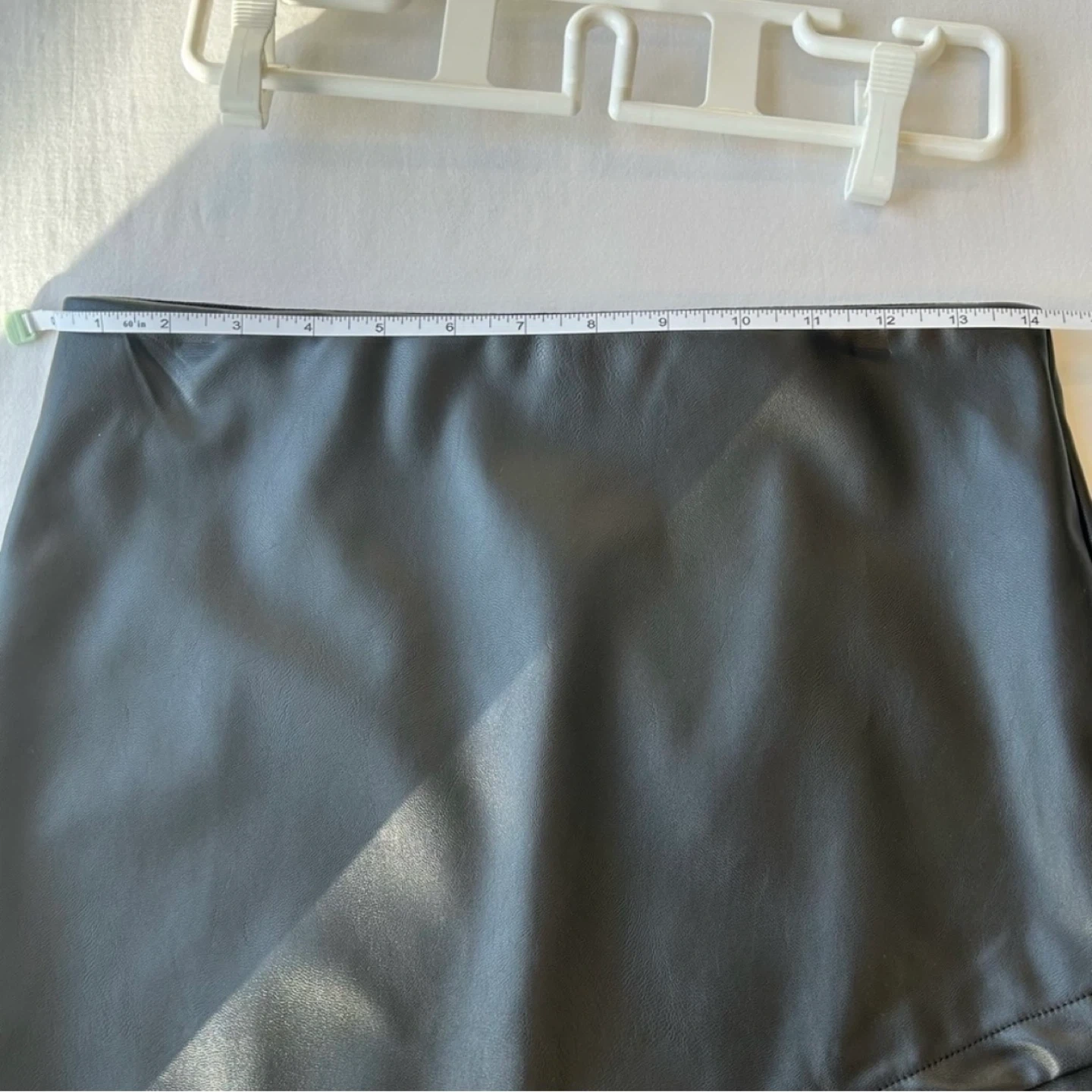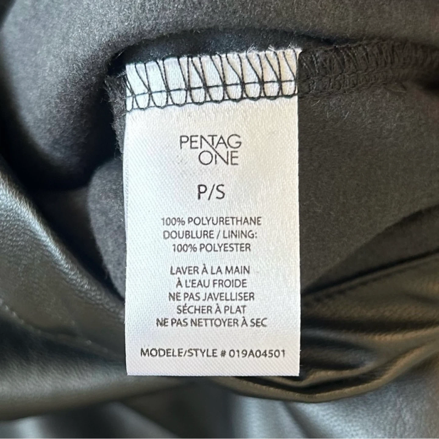Black vegan leather mini skirt from Pentagone. Asymmetrical crossover design. Stretchy pull on style. Hardly worn. Women’s size S. See photos for measurements. Cross posted.
