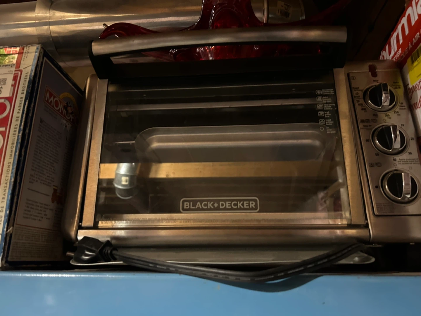 Selling a Black+Decker toaster oven. It's in great shape and ready for a new home! Perfect for small kitchens or anyone who wants to save on energy costs by not using a full-sized oven for smaller meals