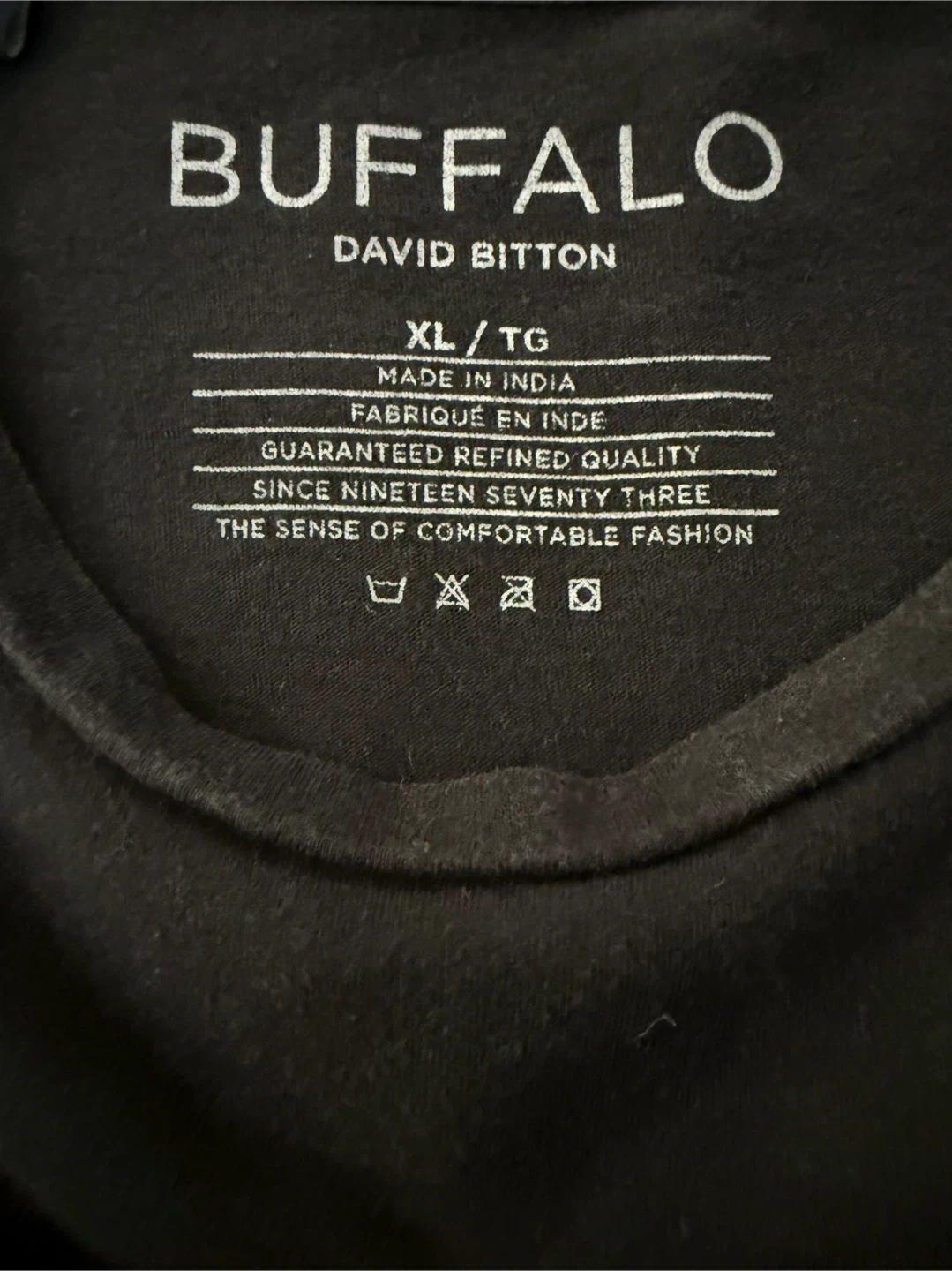 Selling a Buffalo David Bitton black t-shirt in size XL. It features a cool lion graphic on the front. The shirt is made of a comfortable material and is in great condition!