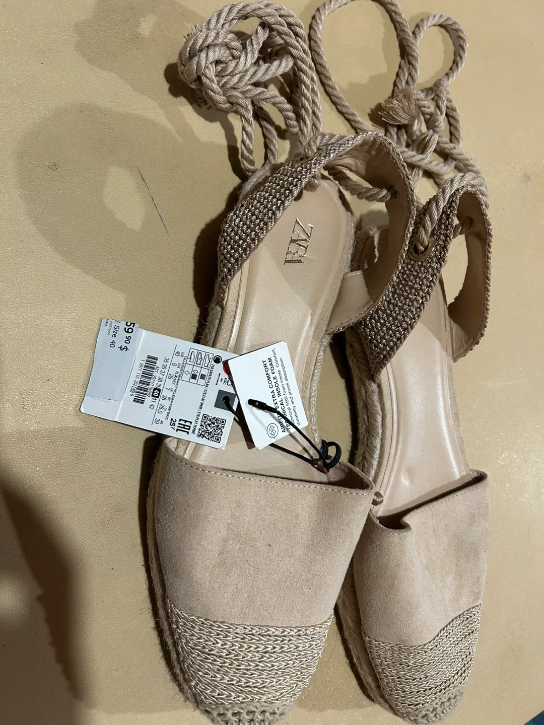 Selling a pair of Zara espadrille wedge sandals! They are a size 40 and feature a stylish lace-up design. Originally bought for $59.90