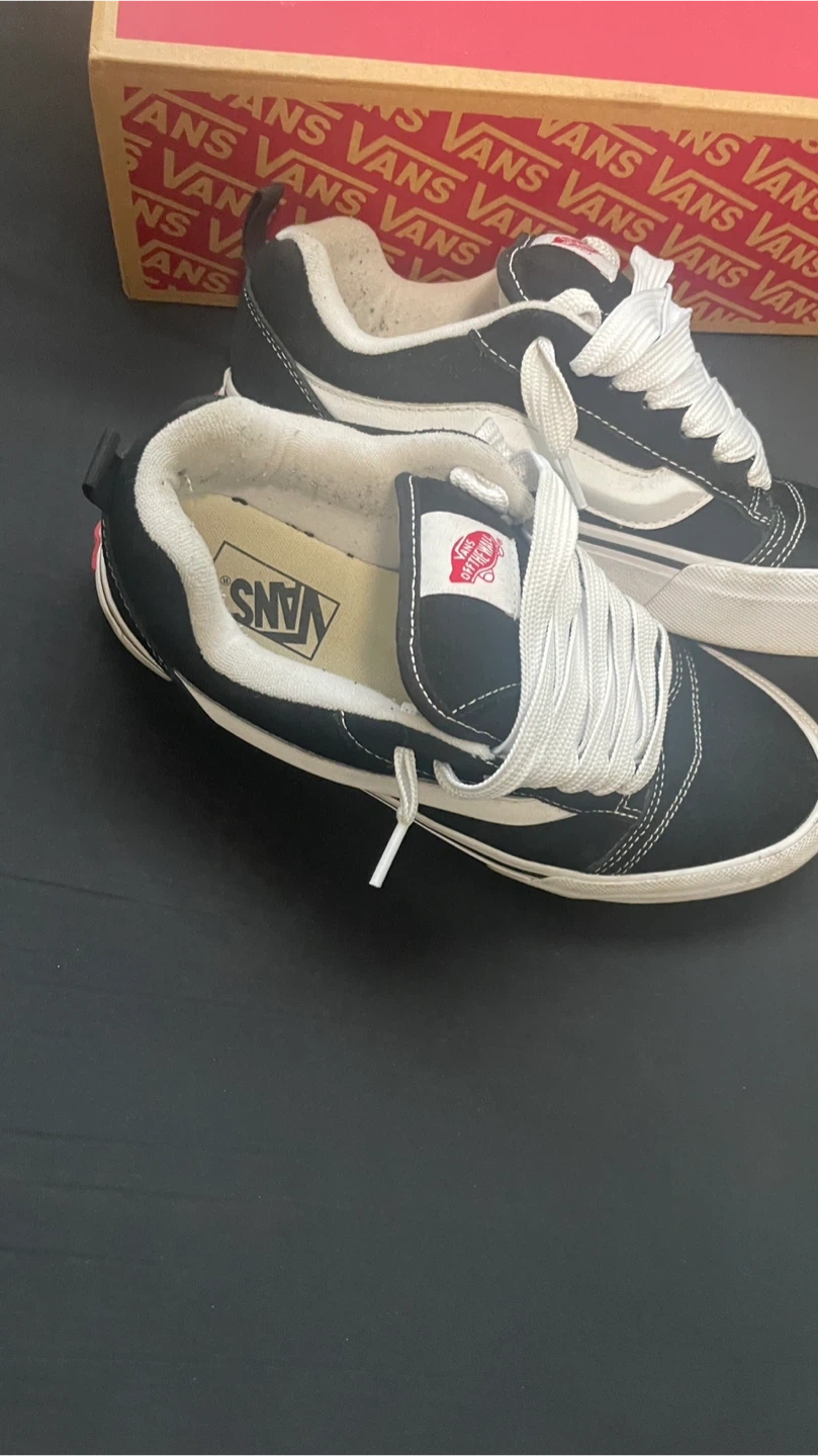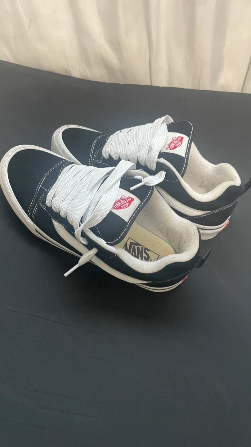 Selling a pair of Vans Knu Skool in black and true white. They are in great condition and come with the original box. The size is US men's 9.