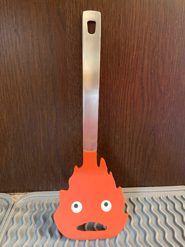 New, never used, without tags Studio Ghibli’s “Howl’s Moving Castle” Calcifer spatula Silicone and stainless steel 11"L x 4"W Pick up near Don Mills & Sheppard Please see my other ads for more children/household items