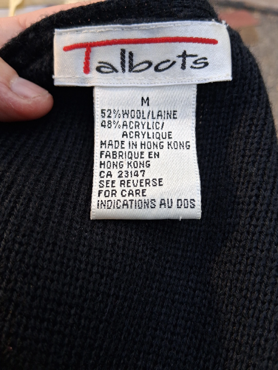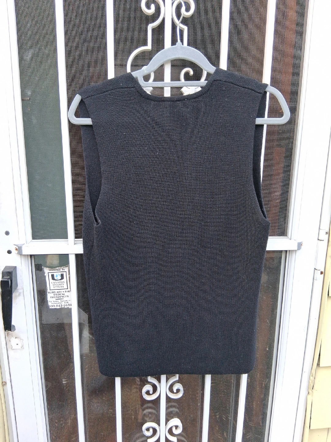 Selling a Talbots black knit vest in size medium. It's made of 52% wool and 48% acrylic. Perfect for layering!