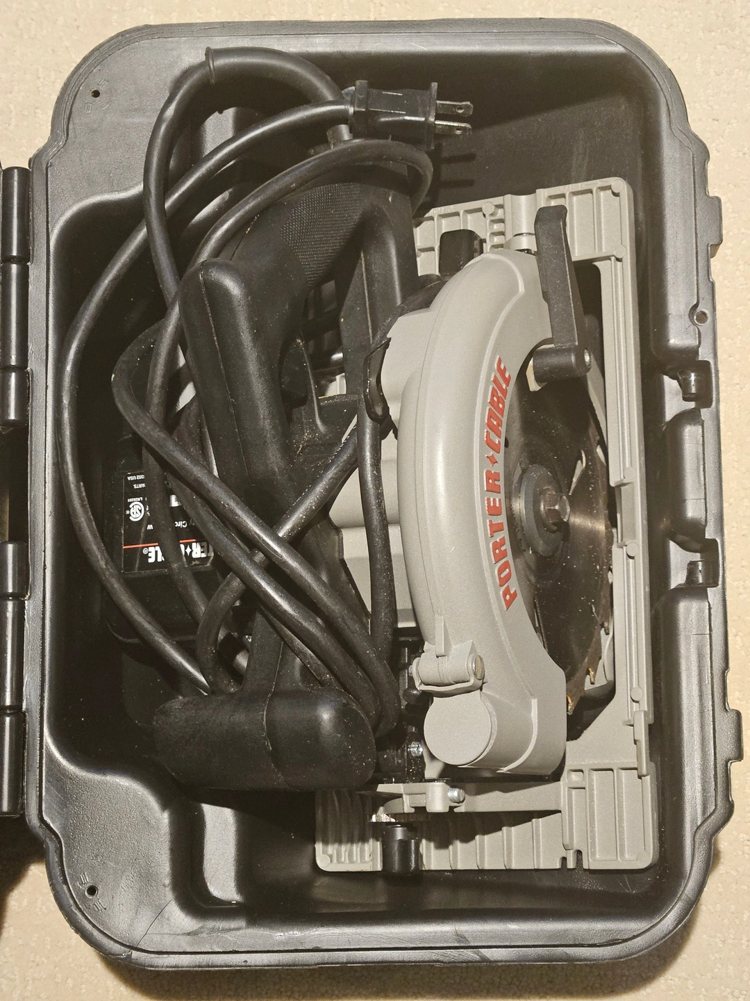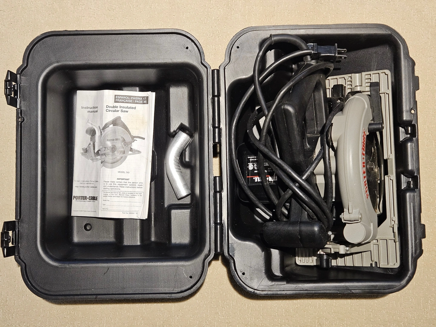 I'm selling a Porter Cable 7 1/4" circular saw that's ready to tackle your next project! This corded saw delivers consistent power, making it a reliable addition to any workshop. The saw comes with its original case, ensuring it's protected and easy to transport. This item is in very good used condition.