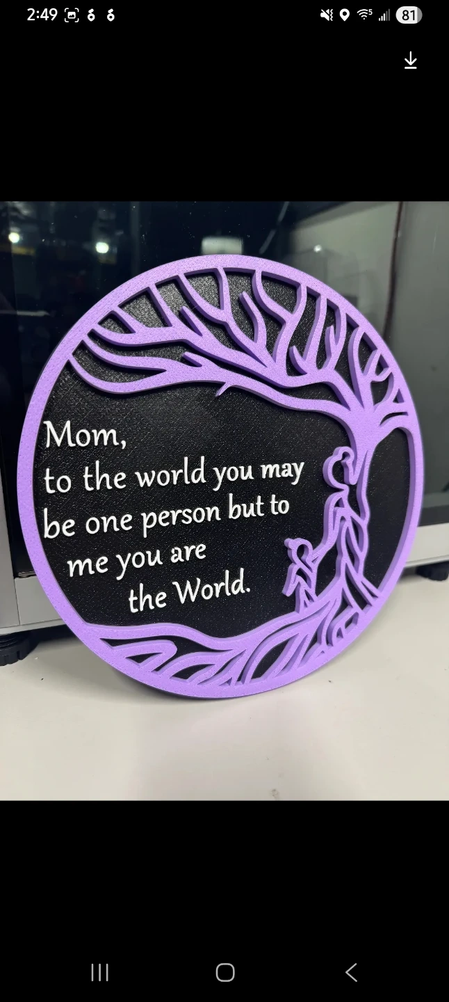 This round wall art features the quote, "Mom, to the world you may be one person but to me you are the World." It has a tree design with a mother and child. Made from durable material, it's a lovely decorative piece. It's perfect for Mother's Day or any occasion to show appreciation!