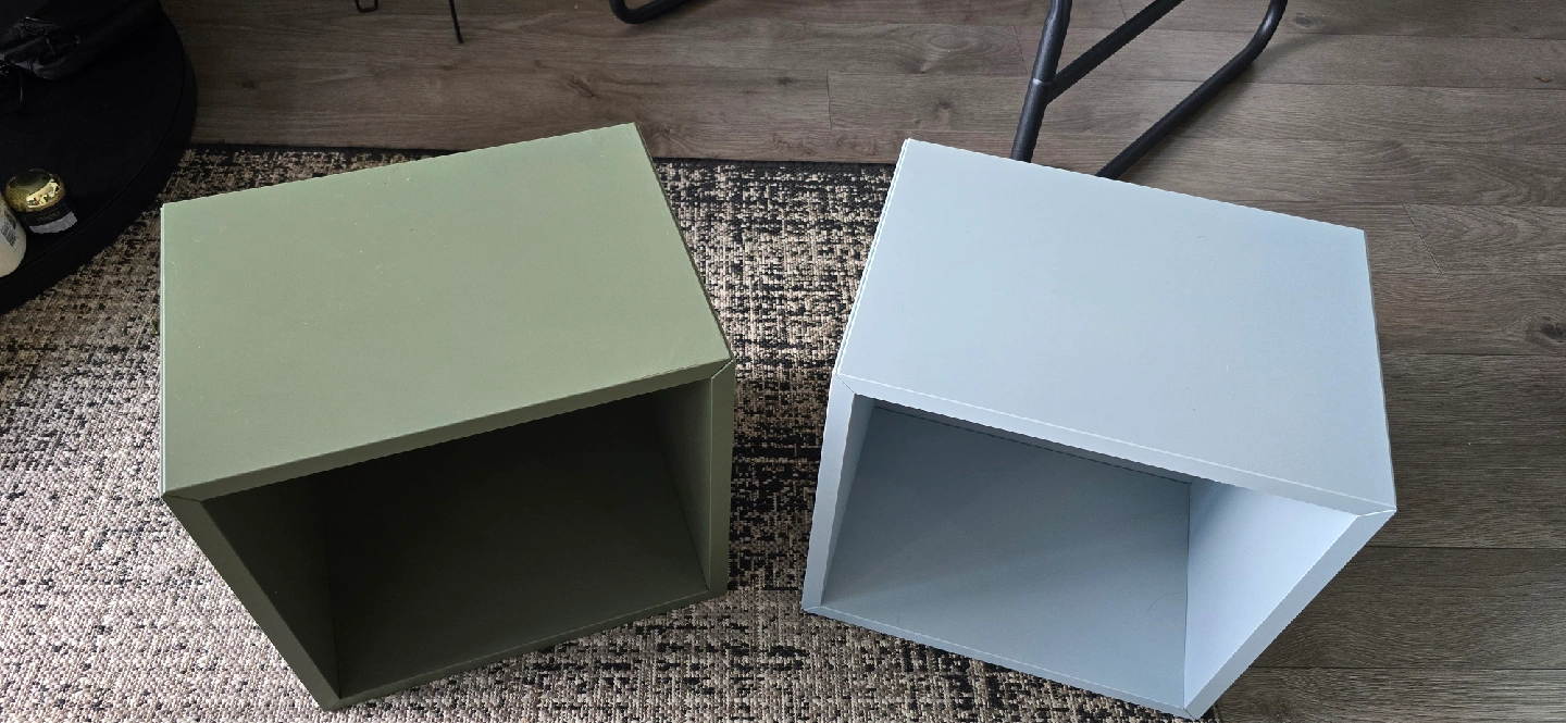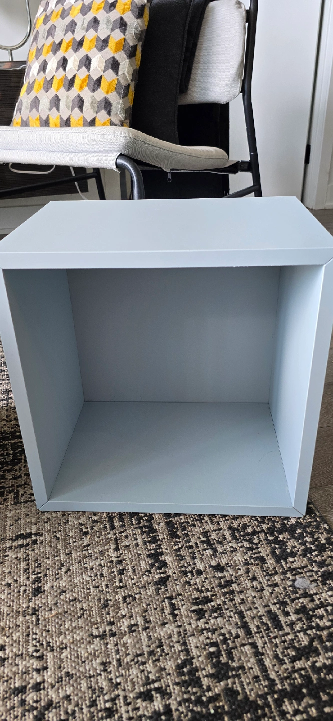 PICK UP DUNDAS AND REGENT PARK BLVD Selling twoIKEA EKET cube shelves, one in a nice green colour and the other in light blue. They are in great shape and ready for a new home! The dimensions are approximately 35cm x 35cm (13 3/4") for the larger side and 25cm x 25cm (9 7/8") for the smaller side