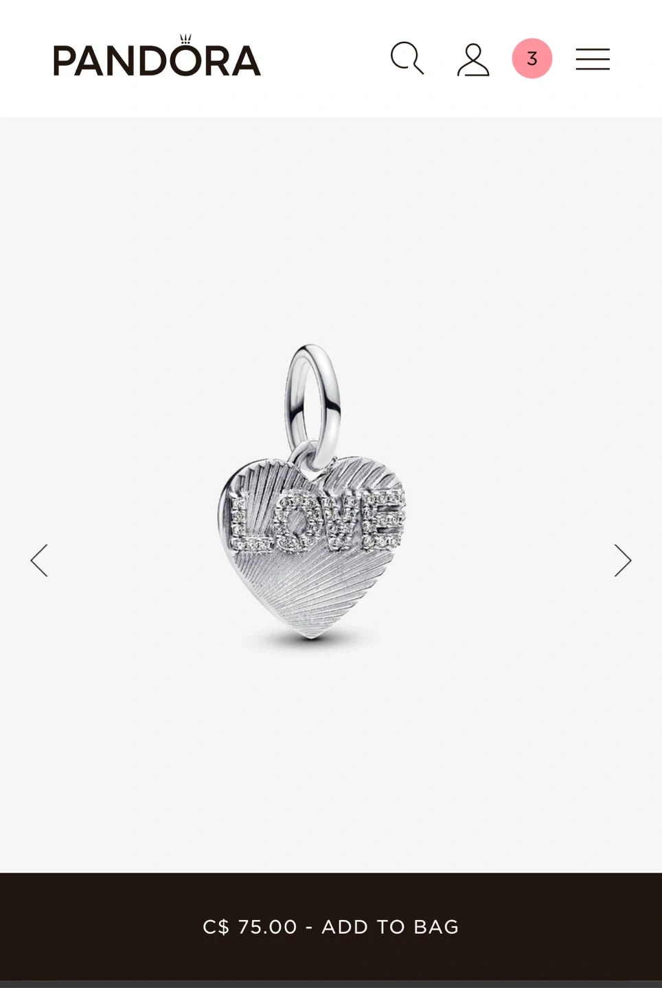 Pandora 'Love' Heart Necklace