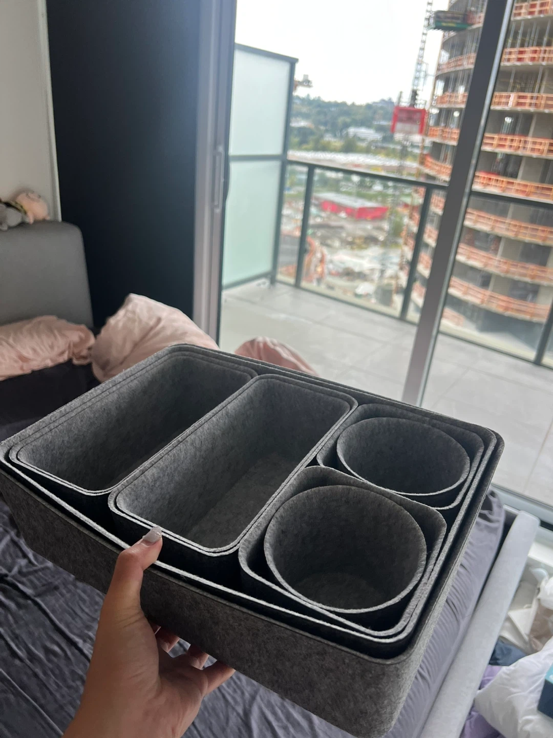 155Declutter your space with this set of six grey felt drawer organizers! Perfect for tidying up drawers in your bedroom, bathroom, or office. These organizers are great for keeping your belongings neat and accessible